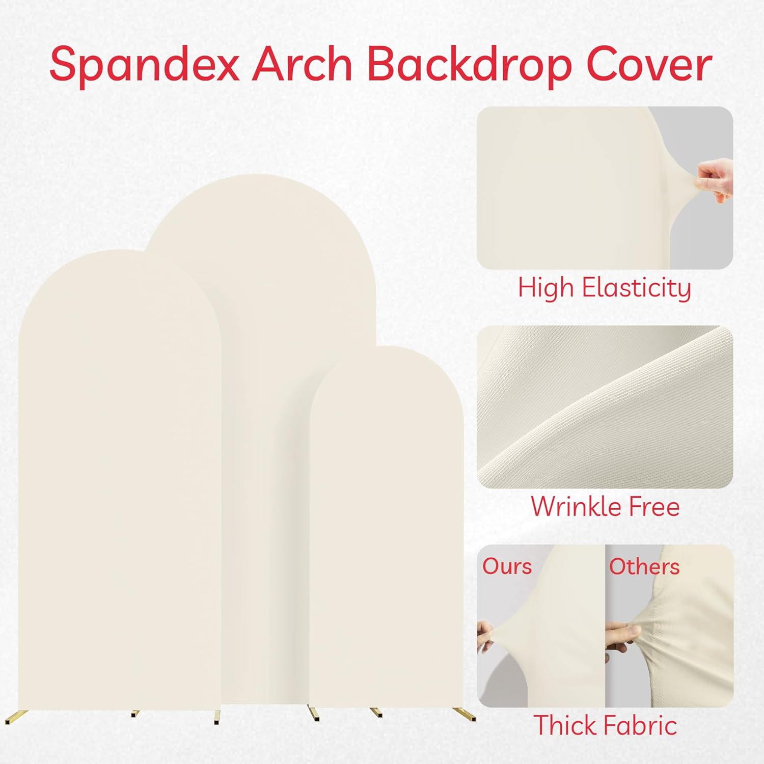 Spandex Anti Wrinkle Arch Backdrop Cover - High Elastic Fitted Arch Stand Cover Set of 3, Beige Round Top Chiara Backdrop for Wedding Birthday Party Garden Decor 4FT, 5FT, 6FT