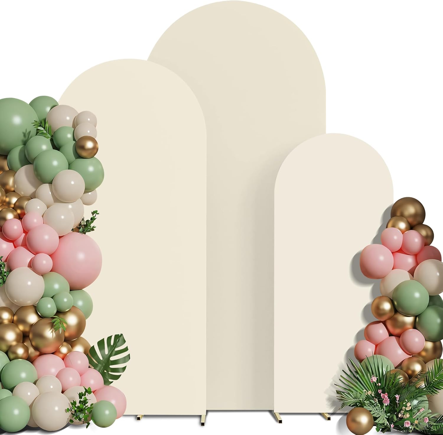 • Garden Collapsible Backdrop Frame Cover: Our beige wedding backdrop stand cover is made of 85% polyester and 15% spandex. The sizes included in this set are:4ftx 1.6ft(hxw), 5ft x 2.1ft(hxw), and 6ft x 2.6ft (hxw). The Chiara backdrop stand cover set boasts a round top design that perfectly fits the arched background stand, ensuring a stable attachment of the arch cover to the stand, minimizing the risk of wobbling or tilting, and enhancing structural stability and safety during use