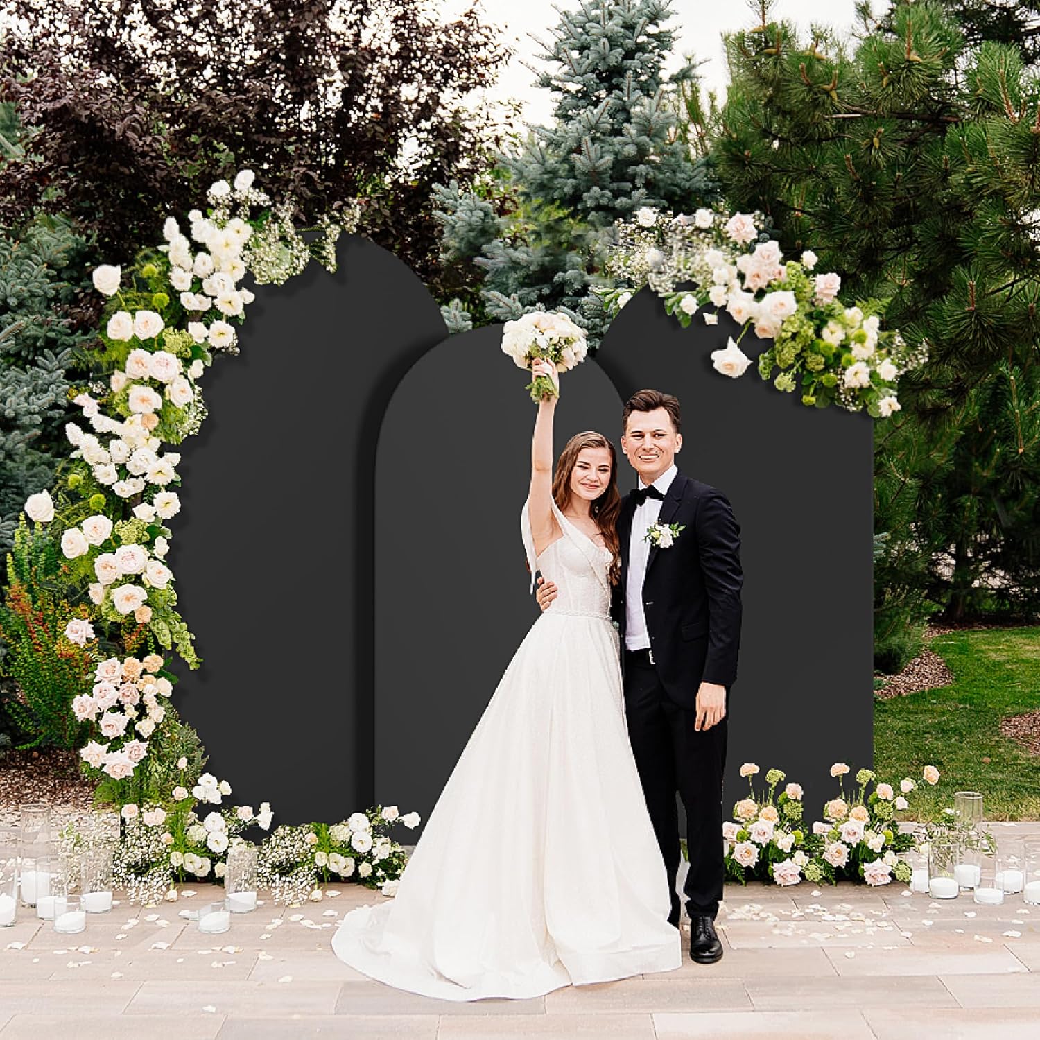• Garden Collapsible Backdrop Frame Cover: Our black wedding backdrop stand cover is made of 85% polyester and 15% spandex. The sizes included in this set are:6ftx2.6ft(hxw), 6.6ftx3.3ft(hxw), and 7.2ftx4ft (hxw). The Chiara backdrop stand cover set boasts a round top design that perfectly fits the arched background stand, ensuring a stable attachment of the arch cover to the stand, minimizing the risk of wobbling or tilting, and enhancing structural stability and safety during use