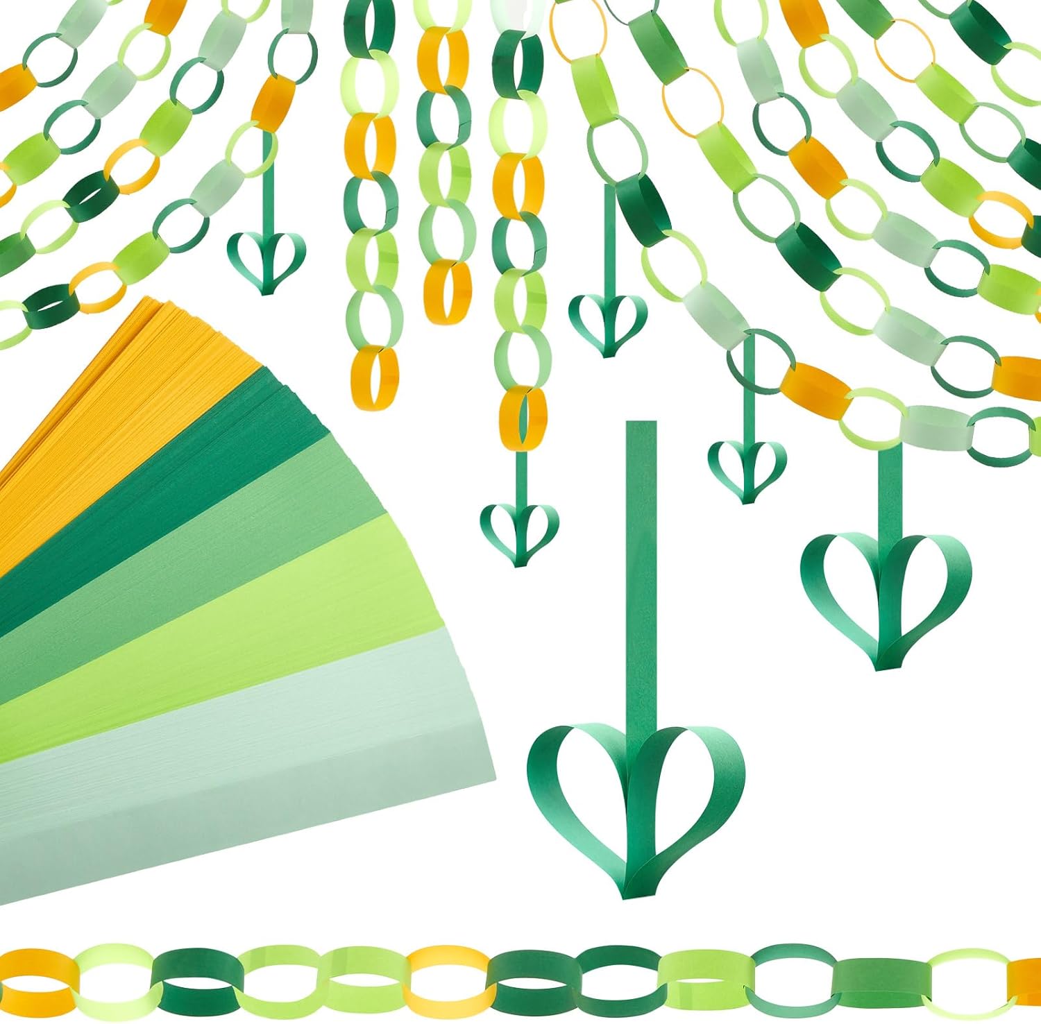 Lincia 600 Sheet Halloween Paper Chain Garland, Construction DIY Crafts Chain Strip for Fall Thanksgiving Party Decor, 1x8 Inch with Double Sided Tape (Irish Day)
