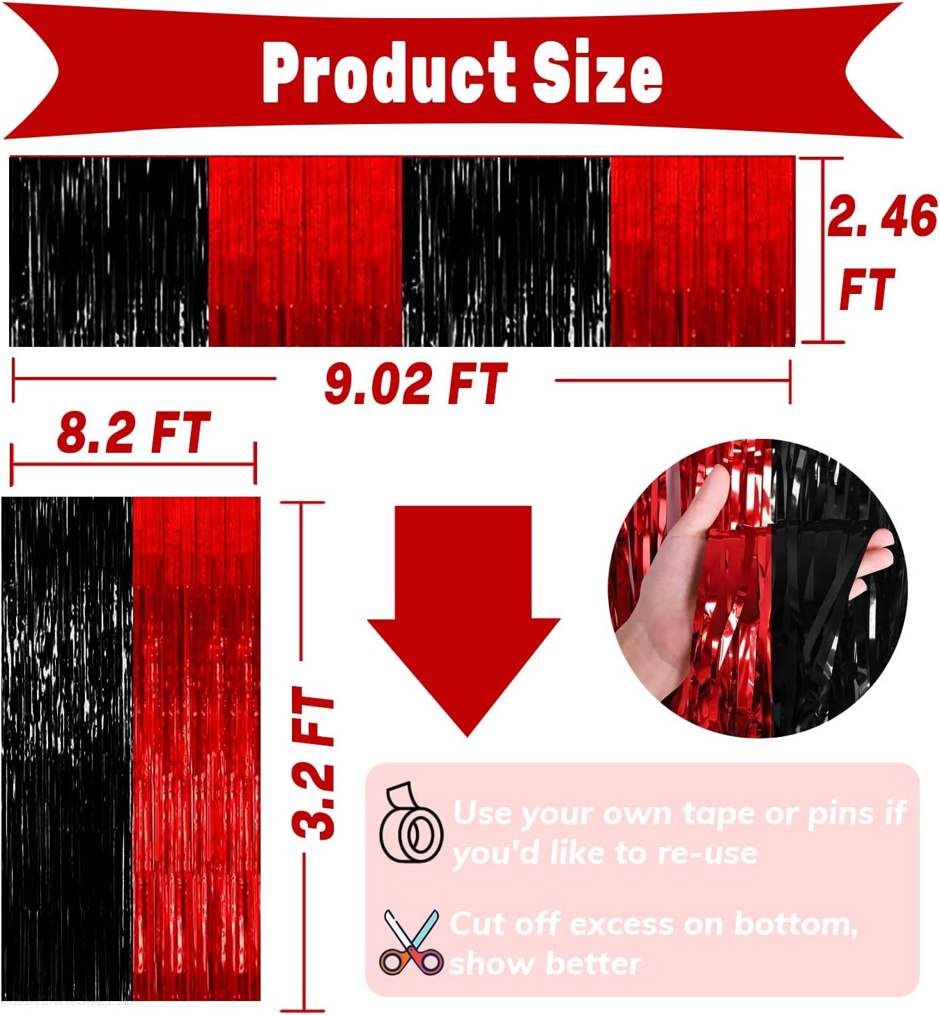 4P Metallic Foil Fringe Tinsel Table Skirts for Rectangle Tables Backdrop Banner Streamer Garland Curtains for Parade Floats Wedding Graduation Anniversary Birthday Parties Decoration (Black Red)