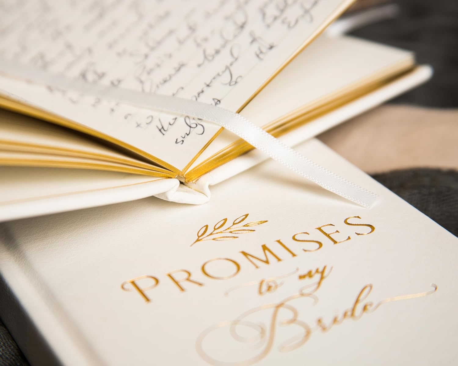 Promises To My Groom & Bride Wedding Vow Books (Set of 2) - Pocket Sized Gold Foil Embossed White Wedding Ceremony Vow Renewal Speech Notebook Planner, Gift for Wife & Husband Newly Engaged Couple