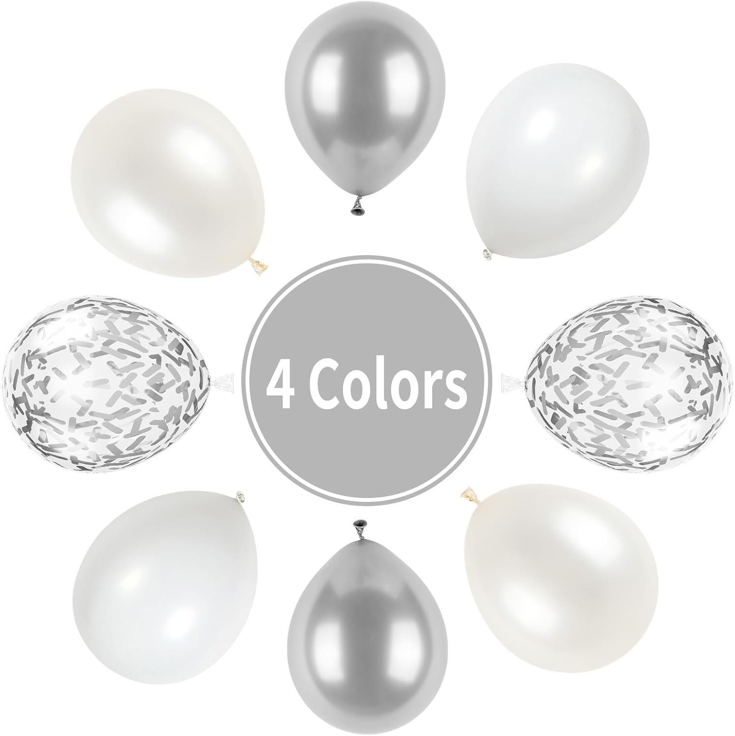 White and Silver Balloons, Metallic Silver and White Balloons Pearl White Silver Party Balloons Silver Confetti Balloons Chrome Latex Balloons for Kids Adults Birthday Wedding Baby Shower Graduation