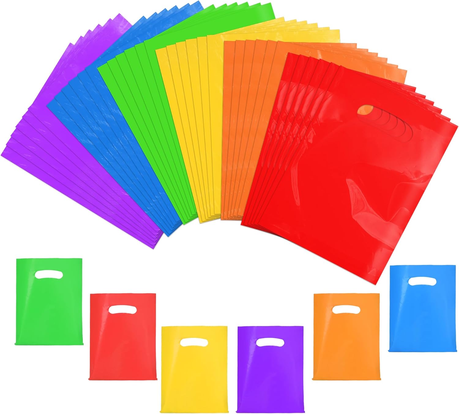 • 【Small Gift Bags】 Our goodie bags measures 6" x 8", the perfect size for birthday parties. Just send the party-goers home with our plastic gift bags, which have enough room to pack everything from candy, handicrafts, to small gifts.