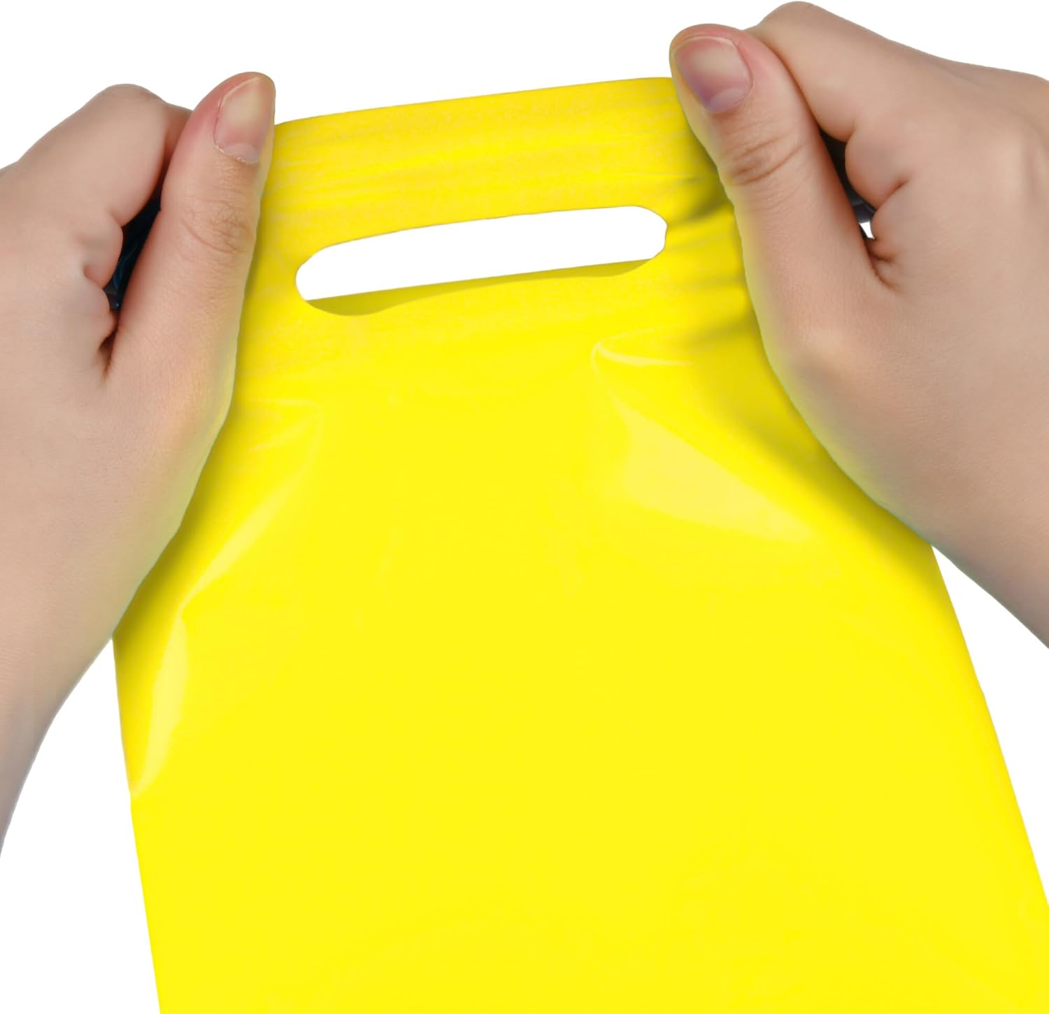 100 PCS Yellow Small Gift Bags, 6"x8" Merchandise Bags for Small Businesses, Goodie Bags Party Favor Bags for Kids, Treat Bag Retail Bag with Handle for Kids Birthday, Christmas