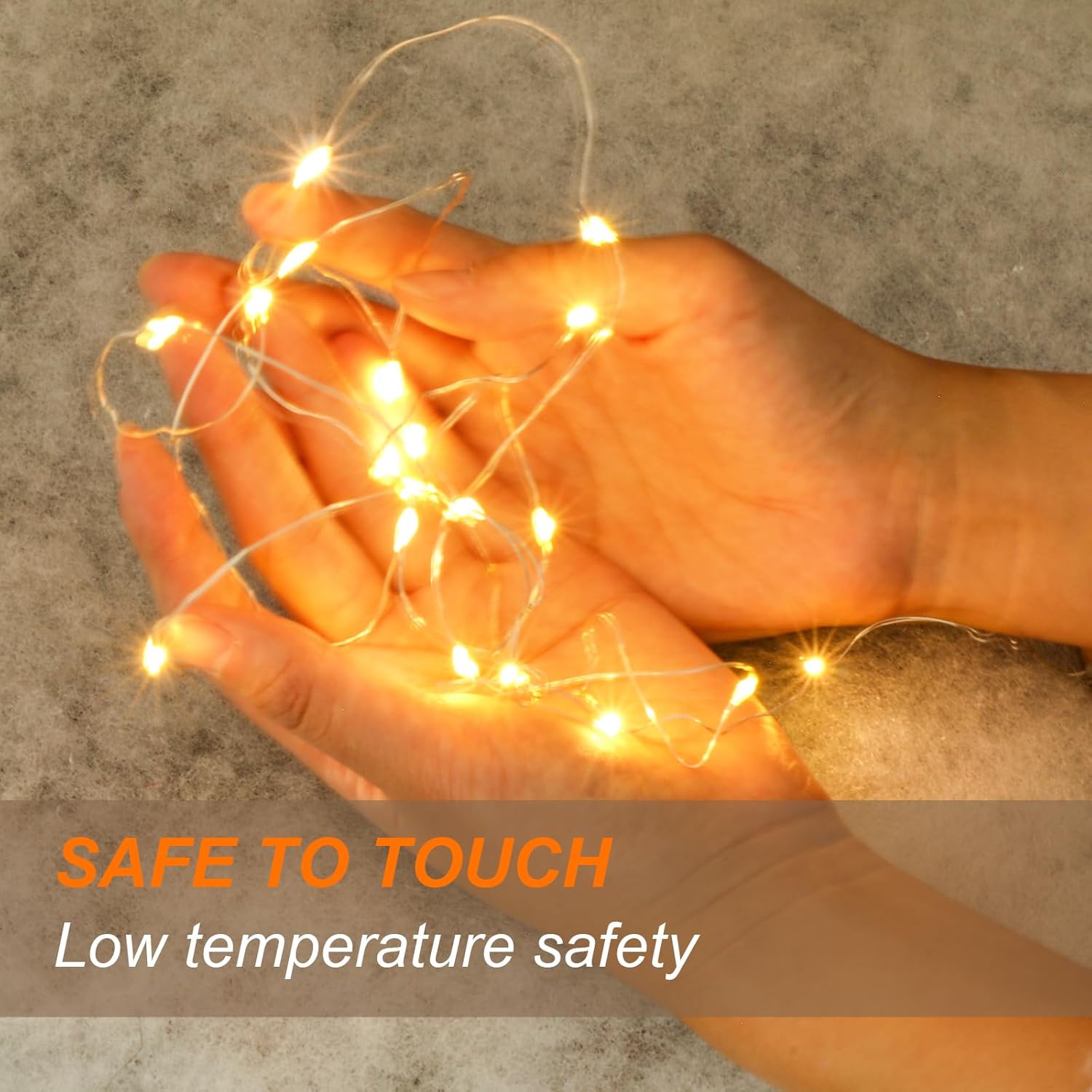 • FLEXIBLE COPPER WIRE LIGHTS FOR DIY APPLICATION - Each string is made of 6.6ft silver coated copper wire with 20 bright warm white mini leds, which is flexible and bendable to fit any DIY shape. Can perfectly fit in bottles or wrap around crafts, window, plants, balcony, furniture, etc. The fairy lights wire parts are IP65 waterproof, you can even immerse the lights in water to achieve a different lighting effect. 【NOTE: cork part needs to keep dry.】