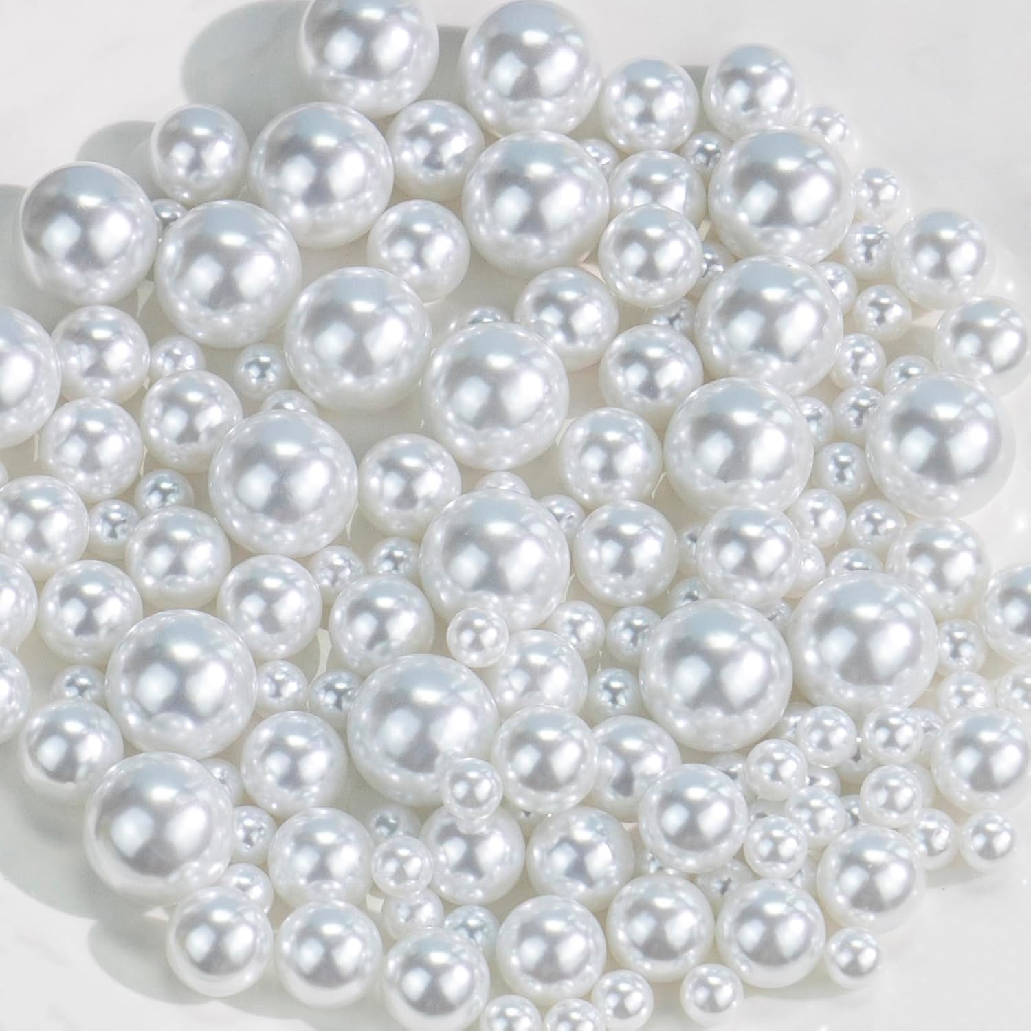 300Pcs White Polished No Hole Faux Pearl Beads for Vase Filling Decorations, Plastic Pearls Vase Fillers, Table Scatters, Wedding Centerpiece, Home Decor, 8/14/20 mm
