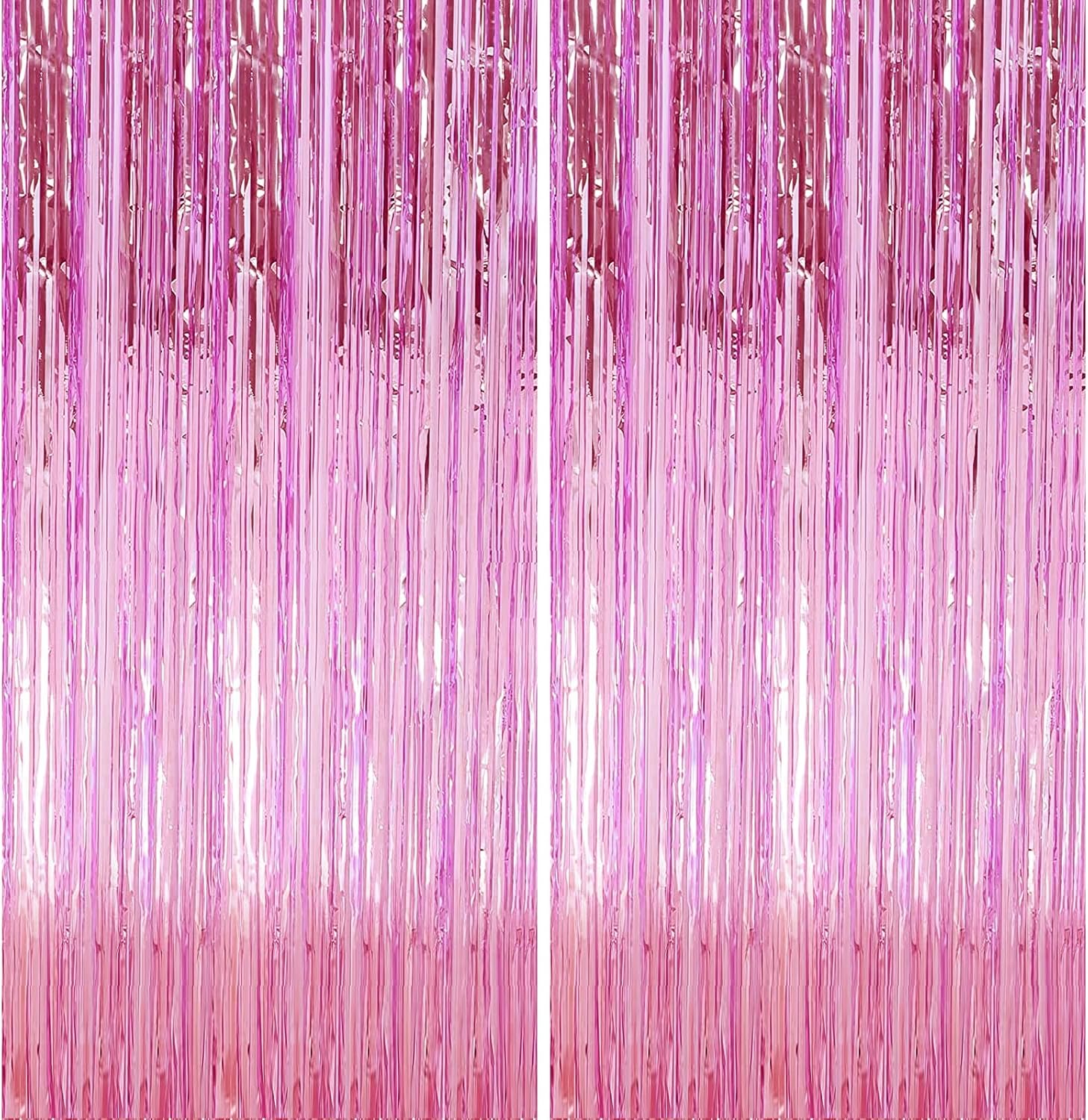 2 Pack 3.28 ft x 6.56 ft Pink Tinsel Curtain Party Backdrop Decorations, Metallic Foil Fringe Backdrop Door for Halloween, Christmas, Birthday Graduation Wedding Party Streamers Photo Backdrop.