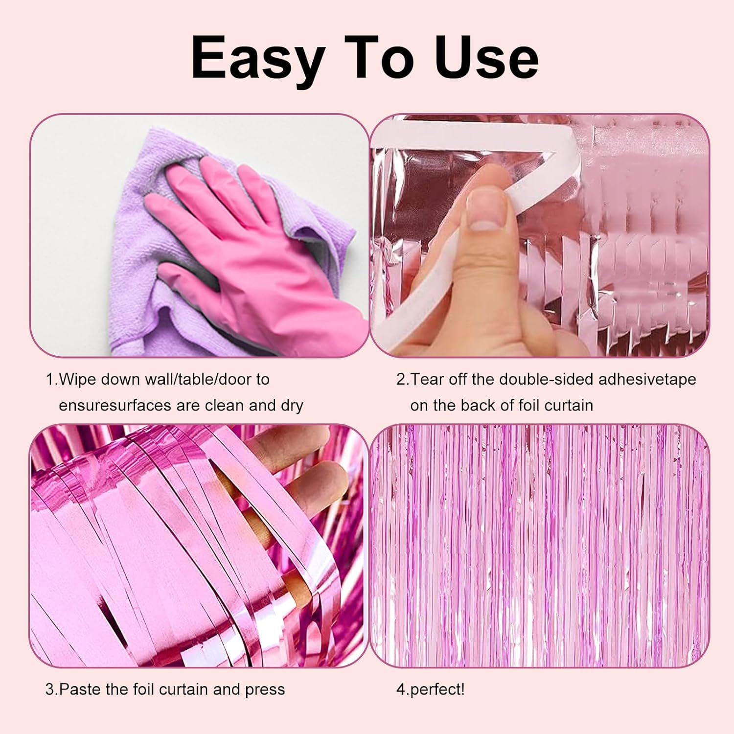 • birthday party birthday backdrop Reusable:Tear off the back of the adhesive tape, then paste this fringe curtain on the top of the wall, window, table, door, Either to fix on wall via fishing line,or anywhere you like to light up your party.