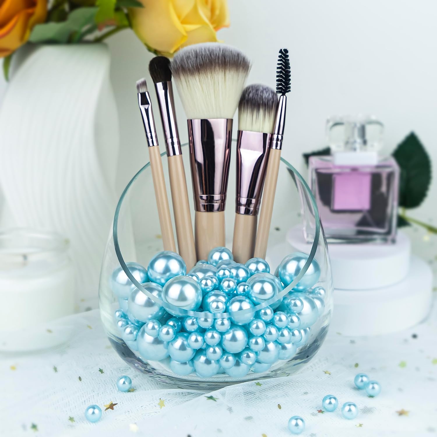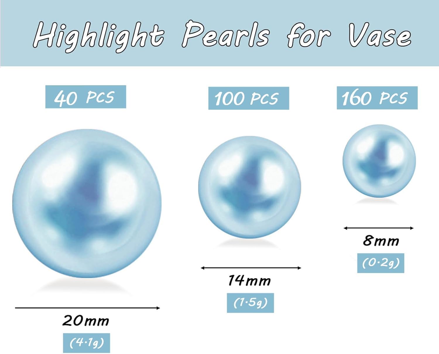 300Pcs Light Blue Polished No Hole Faux Pearl Beads for Vase Filling Decorations, Plastic Pearls Vase Fillers, Table Scatters, Wedding Centerpiece, Home Decor, 8/14/20 mm
