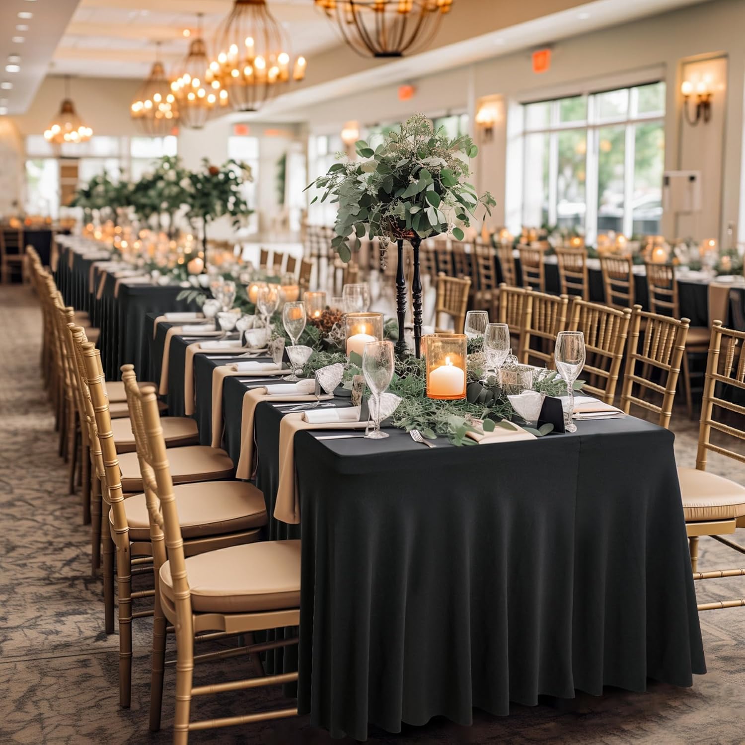 • 【Fitted Tablecloth Package】- 2 Piece spandex table covers. Material: High Quality Wrinkle Free and Stretchy Fabric. Color: Black. Size: 96"L X 30"W X 29"H. Fitted for 8 foot rectangle tables. Change your table into a new look in few seconds with our tablecloths