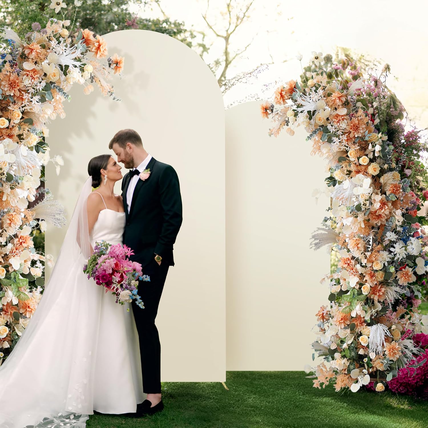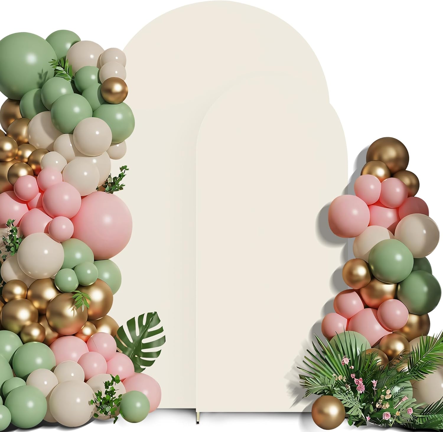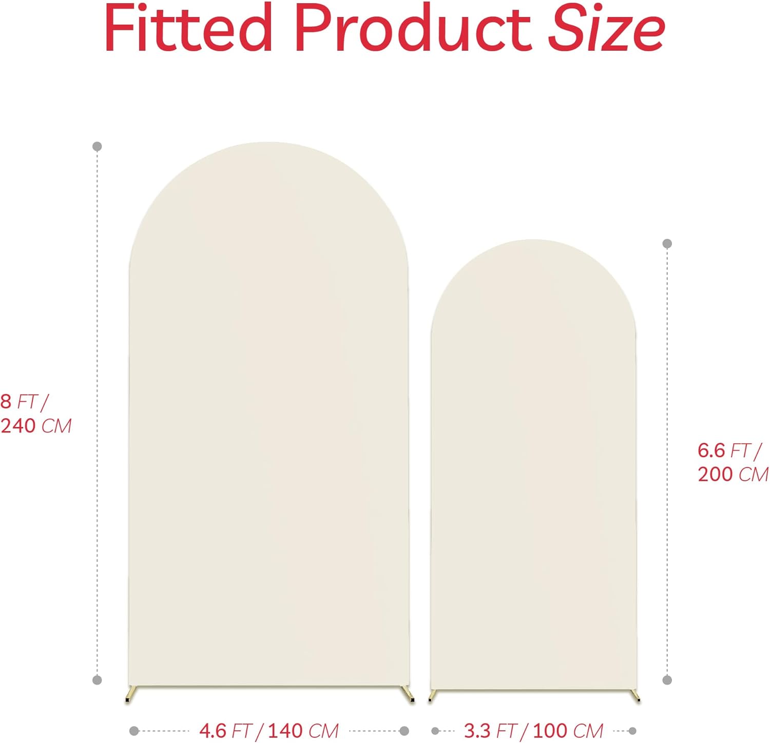 Set of 2 Arch Backdrop Cover Beige High Elastic Wrinkle-Resistant Arch Cover Spandex Fabric Thick Opaque Round Top Chiara Backdrop for Weddings Birthday Baby Shower Garden 6.6FT, 8FT