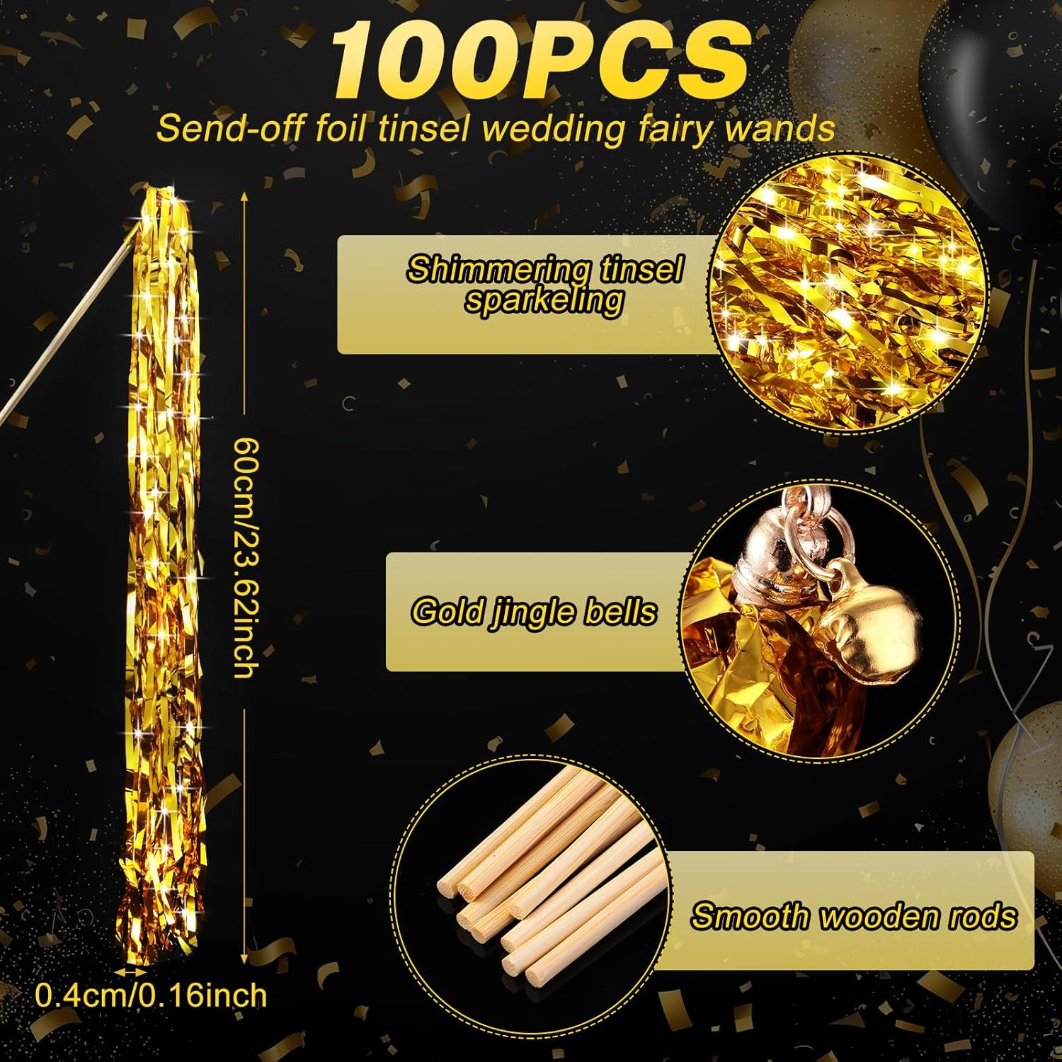 • 100 Pack: with 100 pieces included in the package, this wedding wands set offers a sufficient quantity of wedding foil tinsel wands with bells, ensuring that there are plenty to use for event or celebration, providing a charming and delightful visual for your guest at your wedding