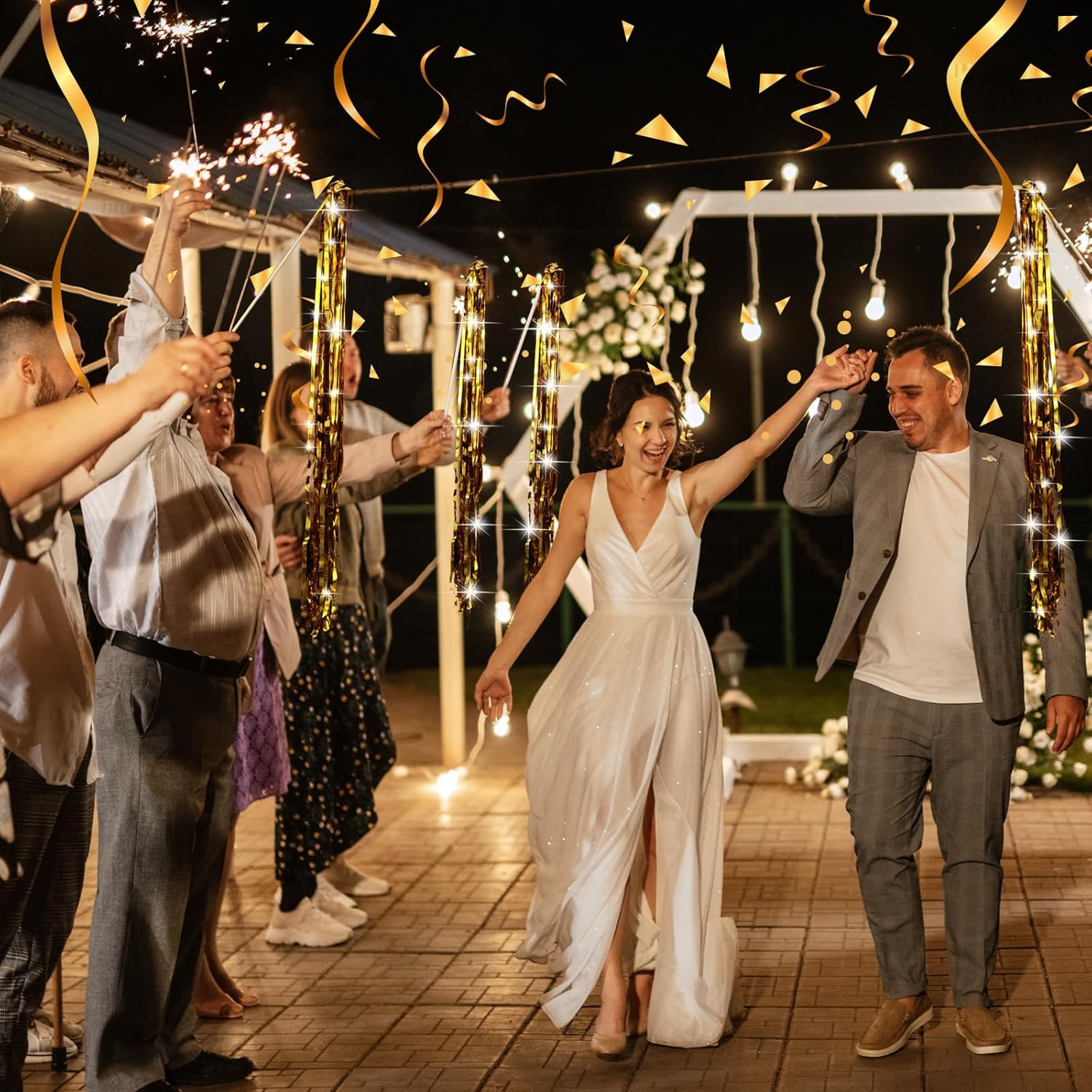 • Exquisite Design: crafted with a stunning gold foil design that reflects light, these wedding send off present a dazzling shine; Moreover, the gentle sound of the bells at the top creates a joyful atmosphere when waved, adding to the celebratory ambiance