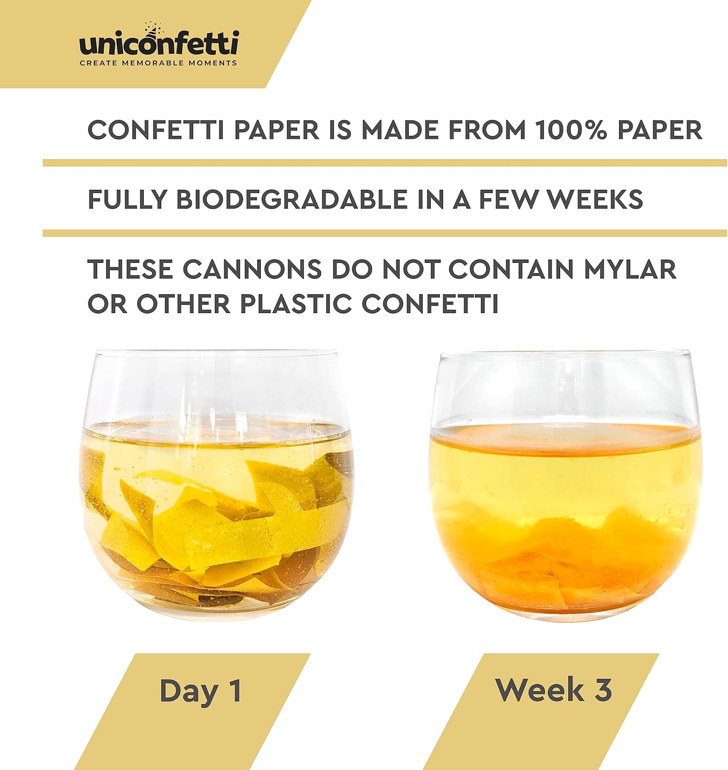 • πŸŽ‰ 100% BIODEGRADABLE [NOT PLASTIC] - Black & Gold Confetti is made of lightweight fire resistant tissue papers, 100% biodegradable, most venues will approve. Our BLACK & GOLD Confetti Paper is NOT PLASTIC or PVC. 100% safe for your party and good for the environment.
