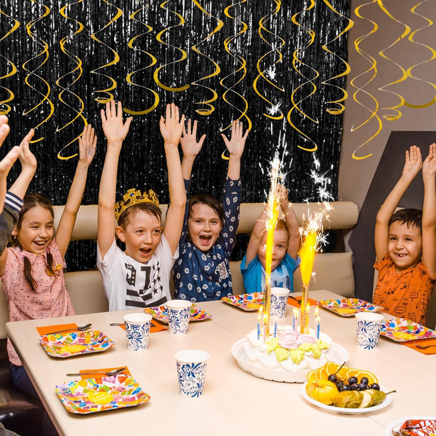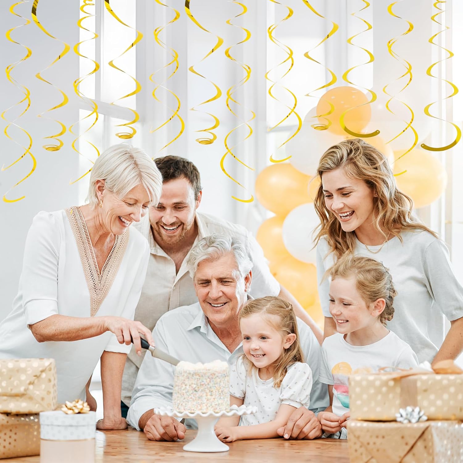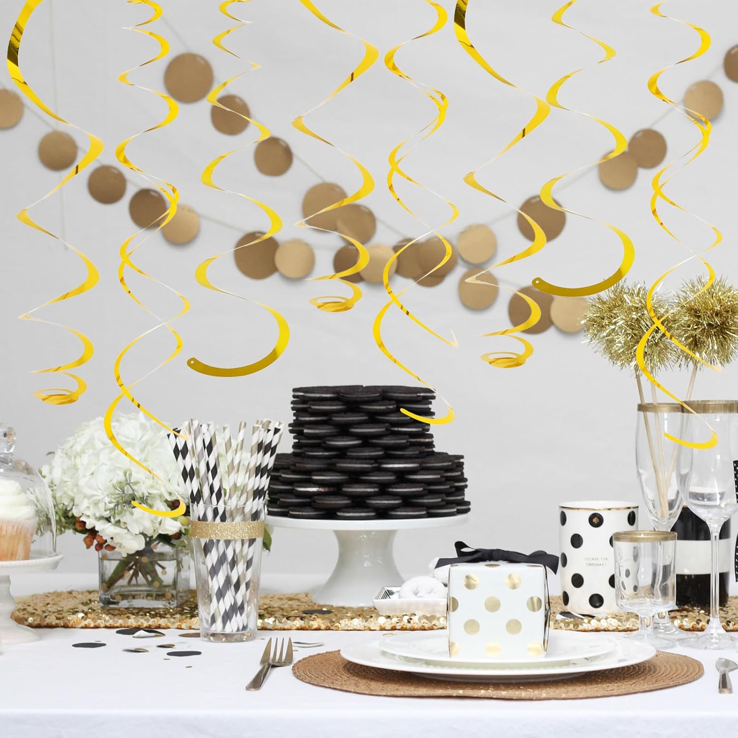 • Assemble Easy: The gold hanging swirls have a small ring on them, just tear the swirl slowly along the edge and hang it on the hook to complete a simple party decoration. Time saving and easy to operate.