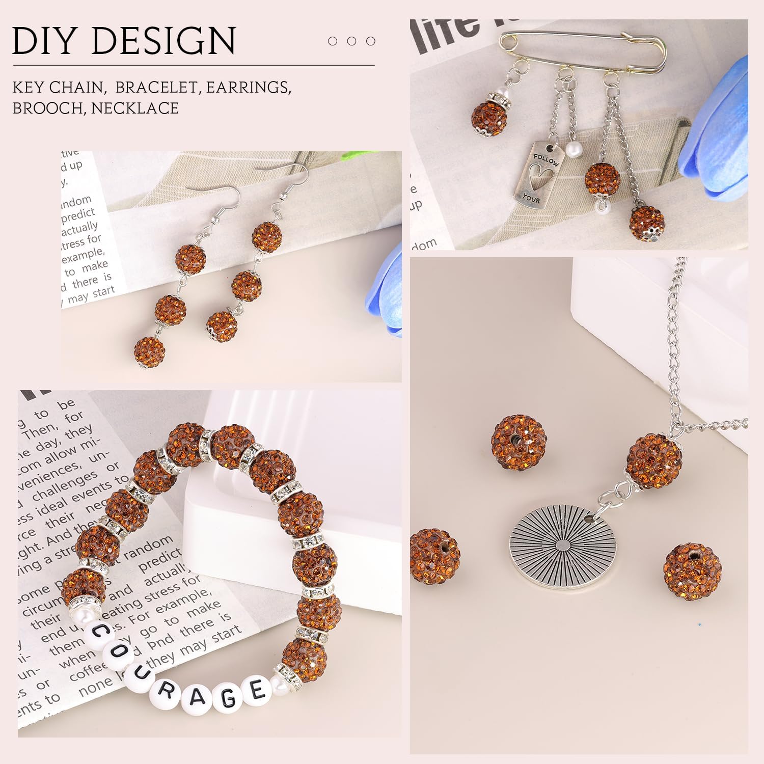 100 pcs 10mm Rhinestone Beads for Jewelry Making, Brown Shiny Round Shamballa Disco Beads Bulk, Sparkle Crystal Clay Christmas for Bracelet Baseball Necklace Earring Crafting and DIY