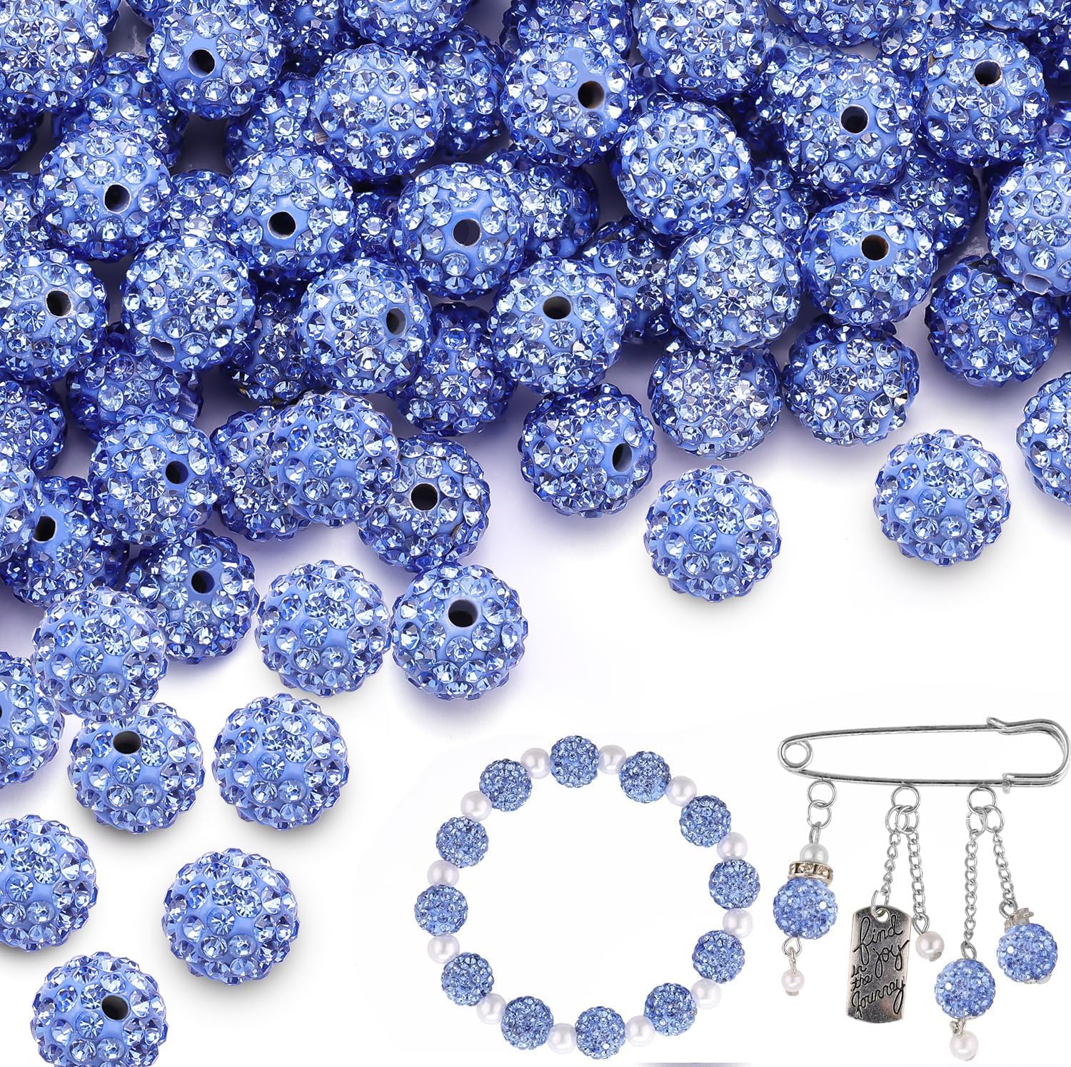 150 pcs 10mm Rhinestone Beads for Jewelry Making, Light Blue Shiny Round Shamballa Disco Beads Bulk, Sparkle Crystal Clay Christmas for Bracelet Baseball Necklace Earring Crafting and DIY