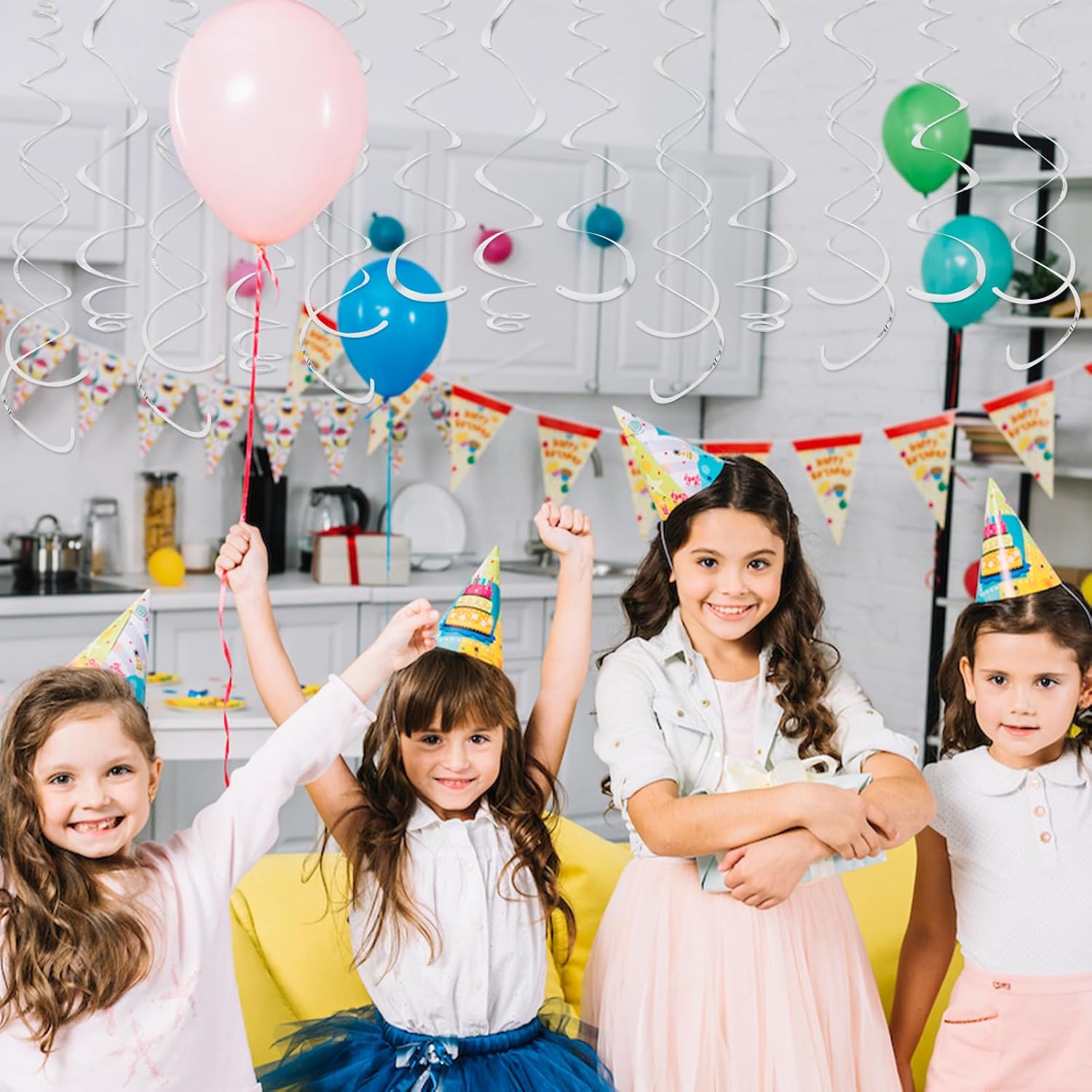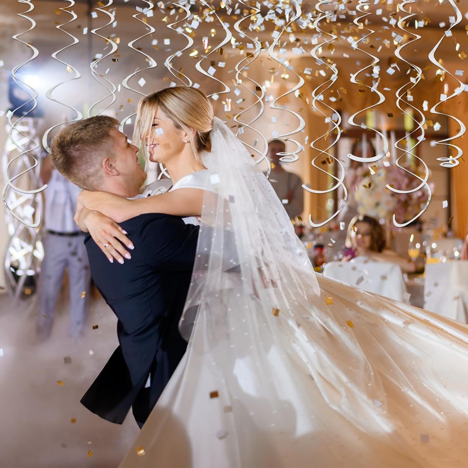 • Assemble Easy: The silver hanging swirls have a small ring on them, just tear the swirl slowly along the edge and hang it on the hook to complete a simple party decoration. Time saving and easy to operate.