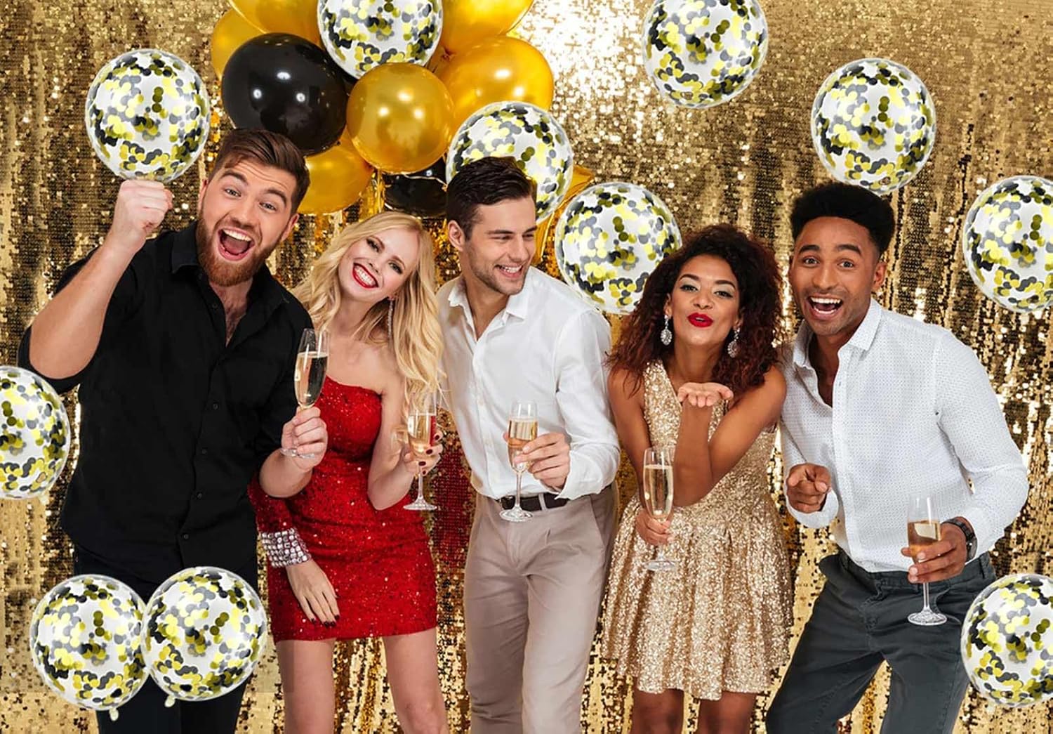 • YOU WILL GET: The Gold Black balloons set including 50 pcs confetti party balloons. all of them filled with Gold Blacken paper confetti dots already put in the transparement latex balloons. they can both hold helium and air. perfect for decoration any party.