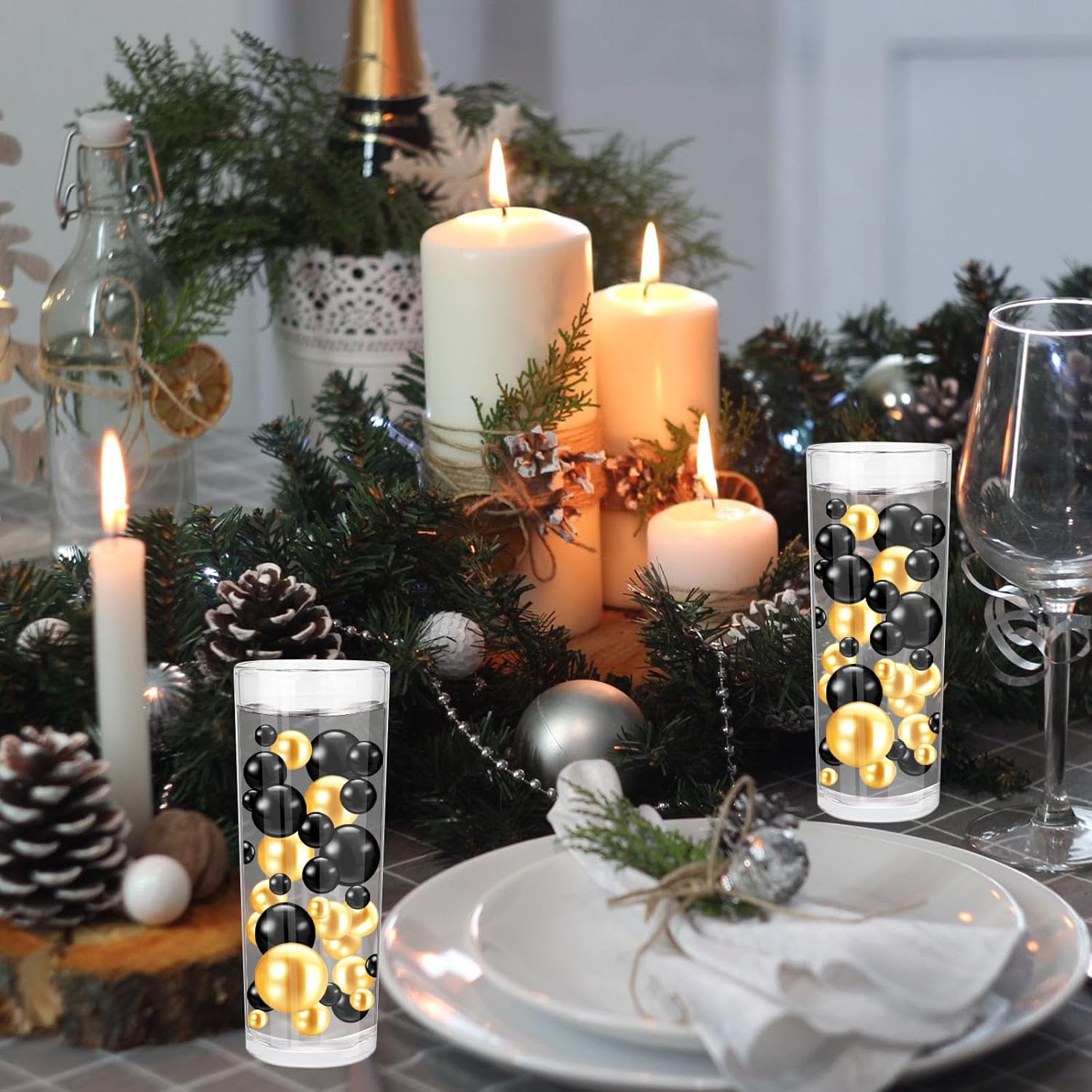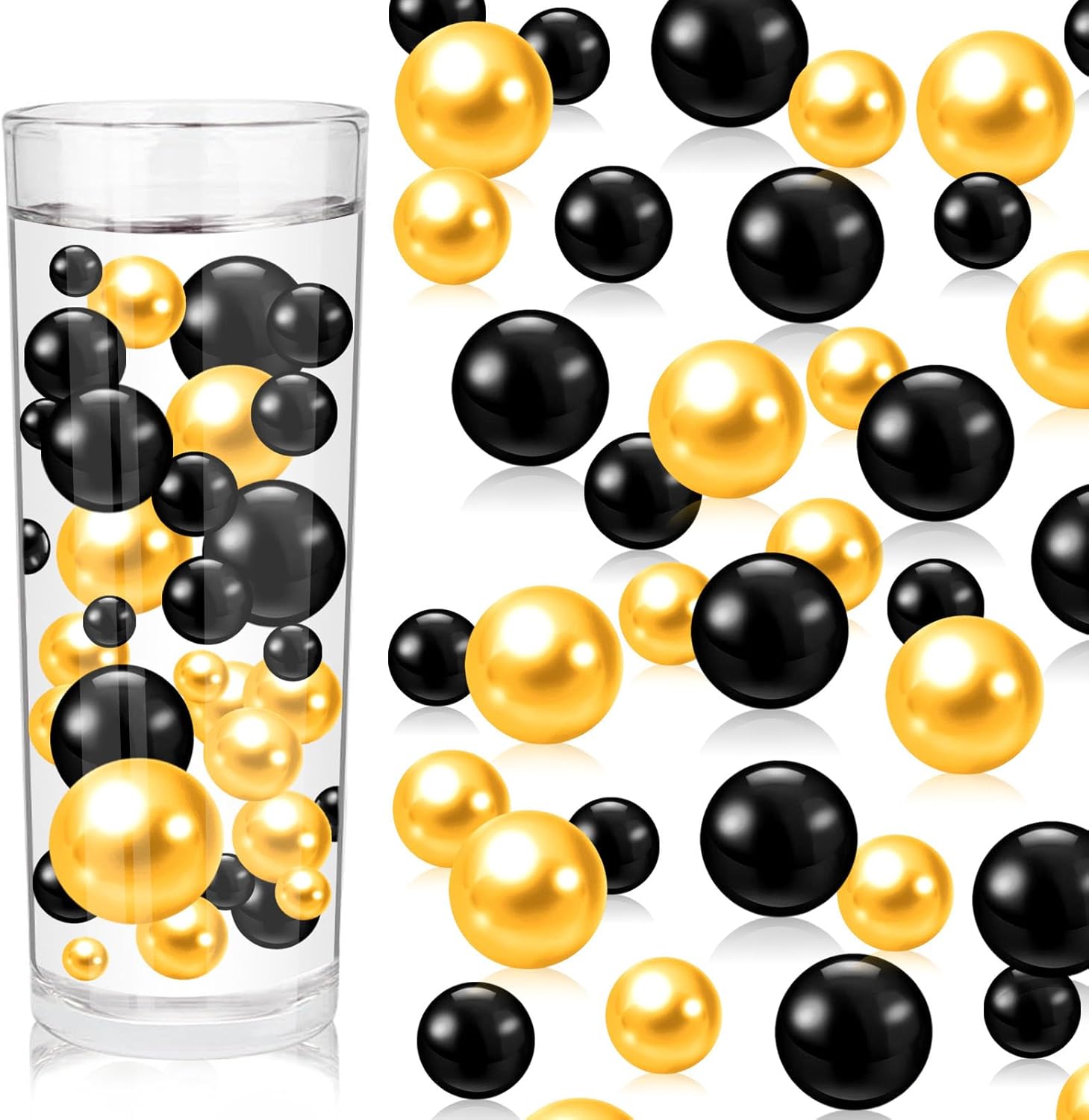100PCS Black Gold Faux Pearls Beads for Centerpiece Vases, Vase Filler Faux Pearls, No Holes Filler Beads for Party Anniversary Graduation Table Decor, 14/20/30mm