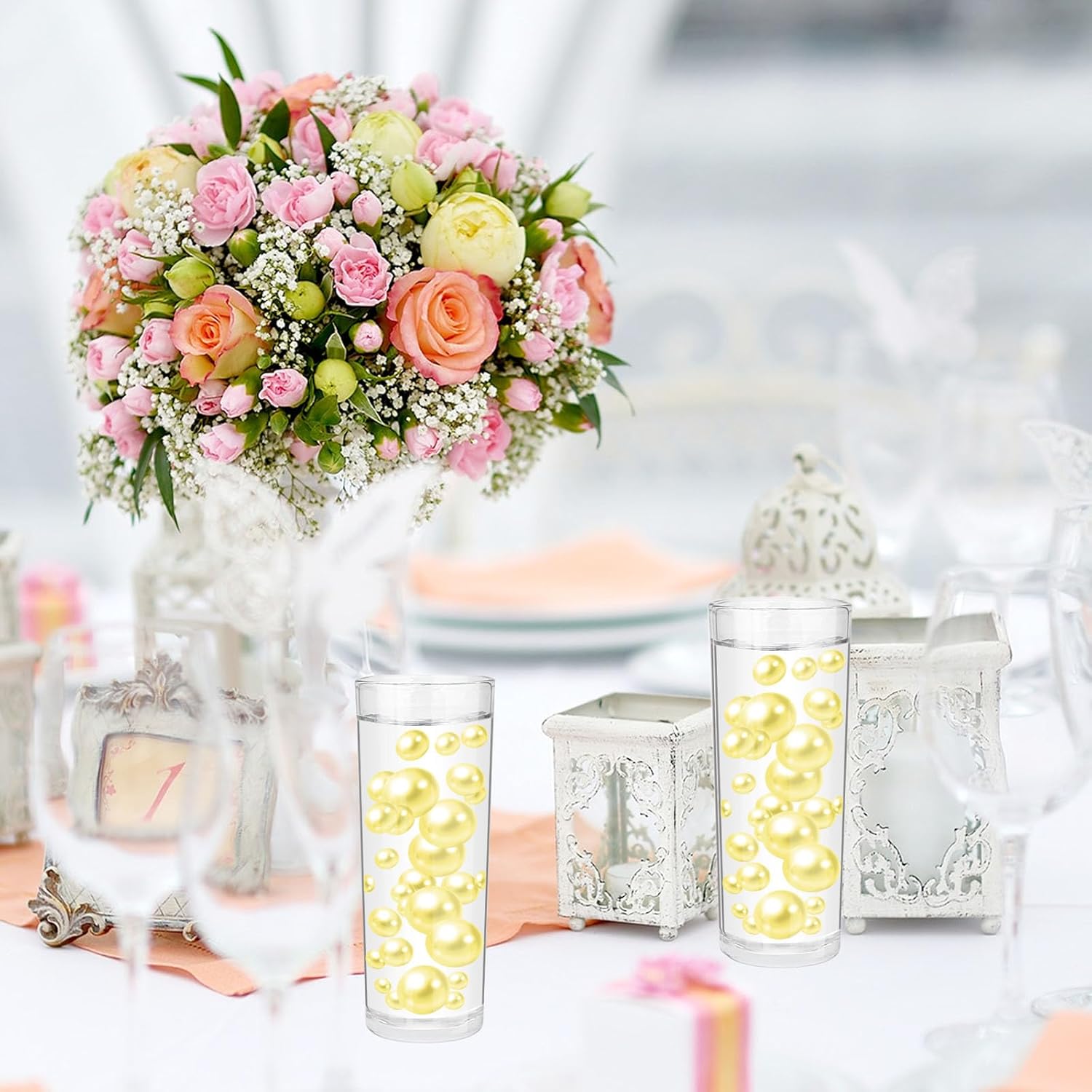 • 【Vase Beads for Vases】These no hole Vase Beads are ideal as vase fillers, the pearl decor surprises your family, and friends, Vase Beads for centerpieces are a great romantic and simply elegant, to decorate your floral arrangements, use Vase Beads for vases no hole as vase fillers, candle plate decorations, give you a sense of beauty and magnificence.