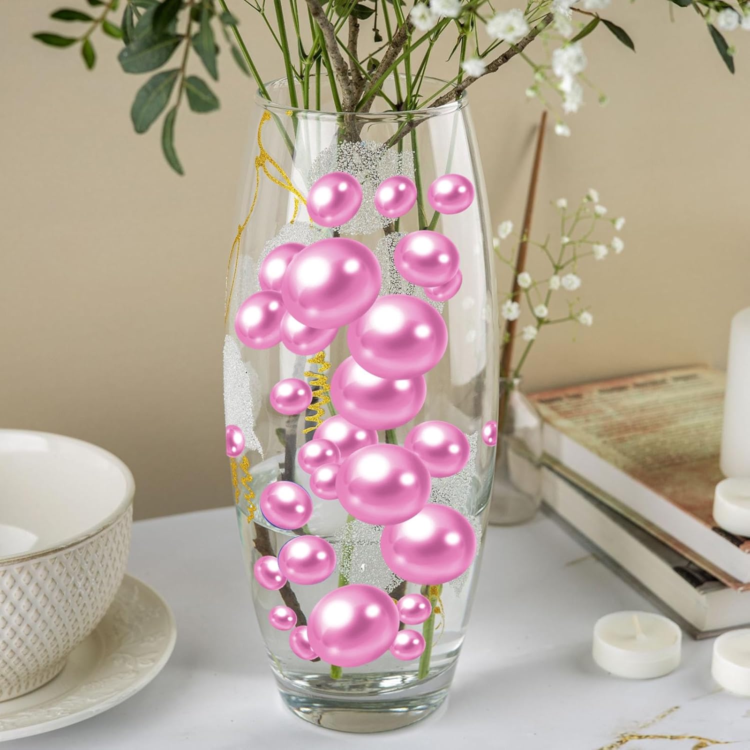 • 【Beads for Decoration】fake pearls are ideal as vase fillers, the pearl decor surprises your family, and friends, Vase Beads for centerpieces are a great romantic and simply elegant, decorate your floral arrangements, use Vase Beads for vases no hole as vase fillers, candle plate decorations, give you a sense of beauty and magnificence. decorative pearls perfect for wedding and family graduation bridal shower decorations; birthday, holiday, DIY Crafts.