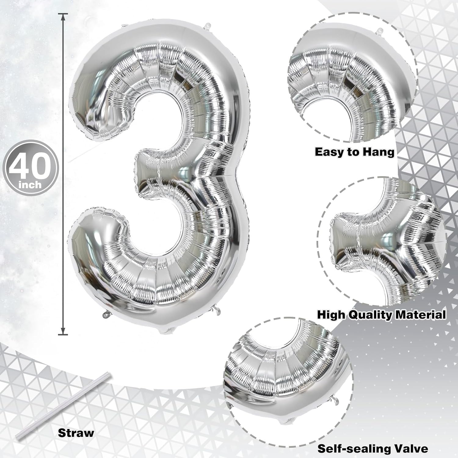 • 💓 Silver Number 30 Balloon: Our package included 40 inch number 3 & 0 balloon and 1pcs straw. Simply inflate the balloon using the straw, and you're ready to party! Silver number foil balloons are the best for women men birthday party decoration.