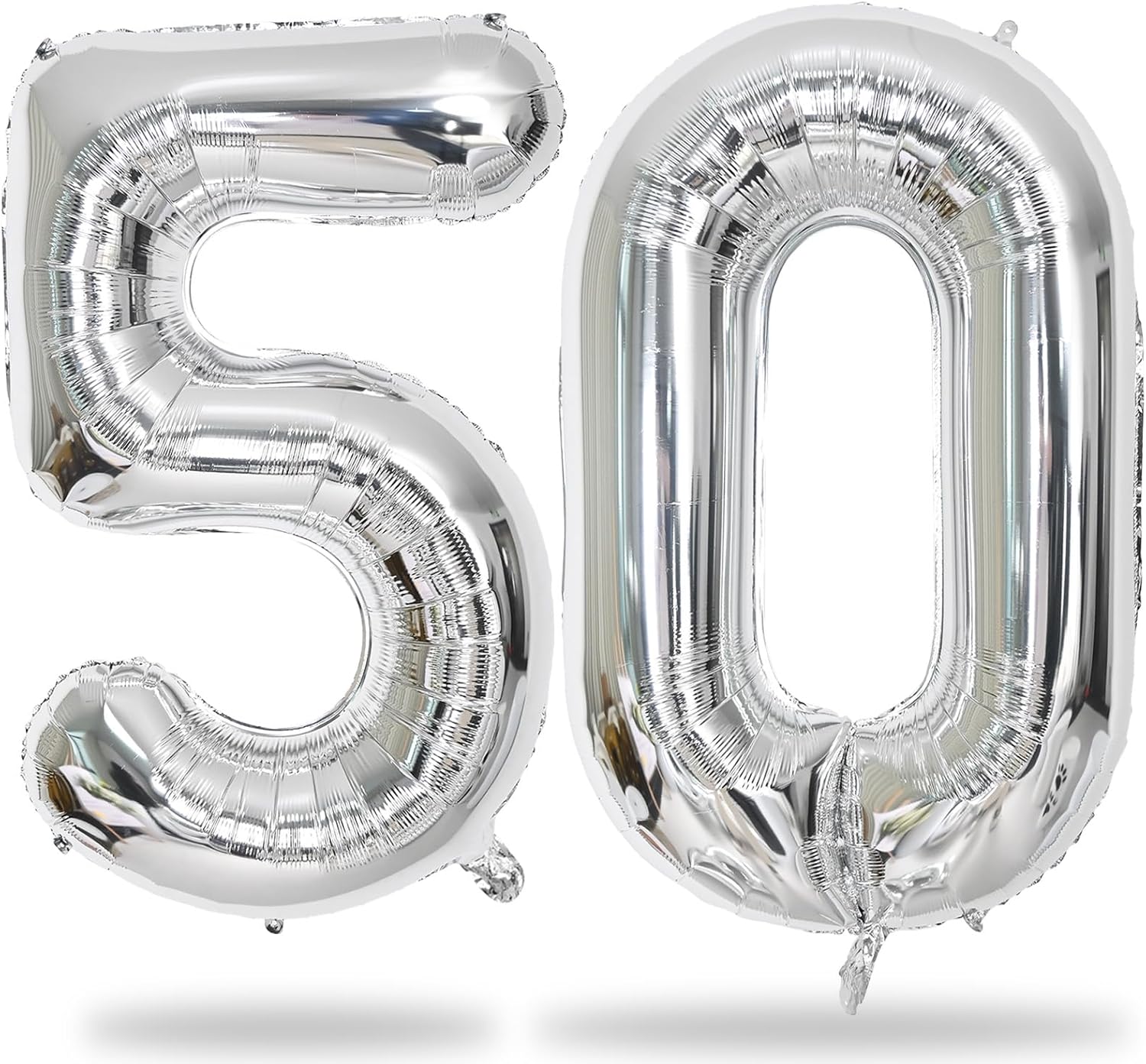 • 💓 Silver Number 50 Balloon: Our package included 40 inch number 5 & 0 balloon and 1pcs straw. Simply inflate the balloon using the straw, and you're ready to party! Silver number foil balloons are the best for women men birthday party decoration.
