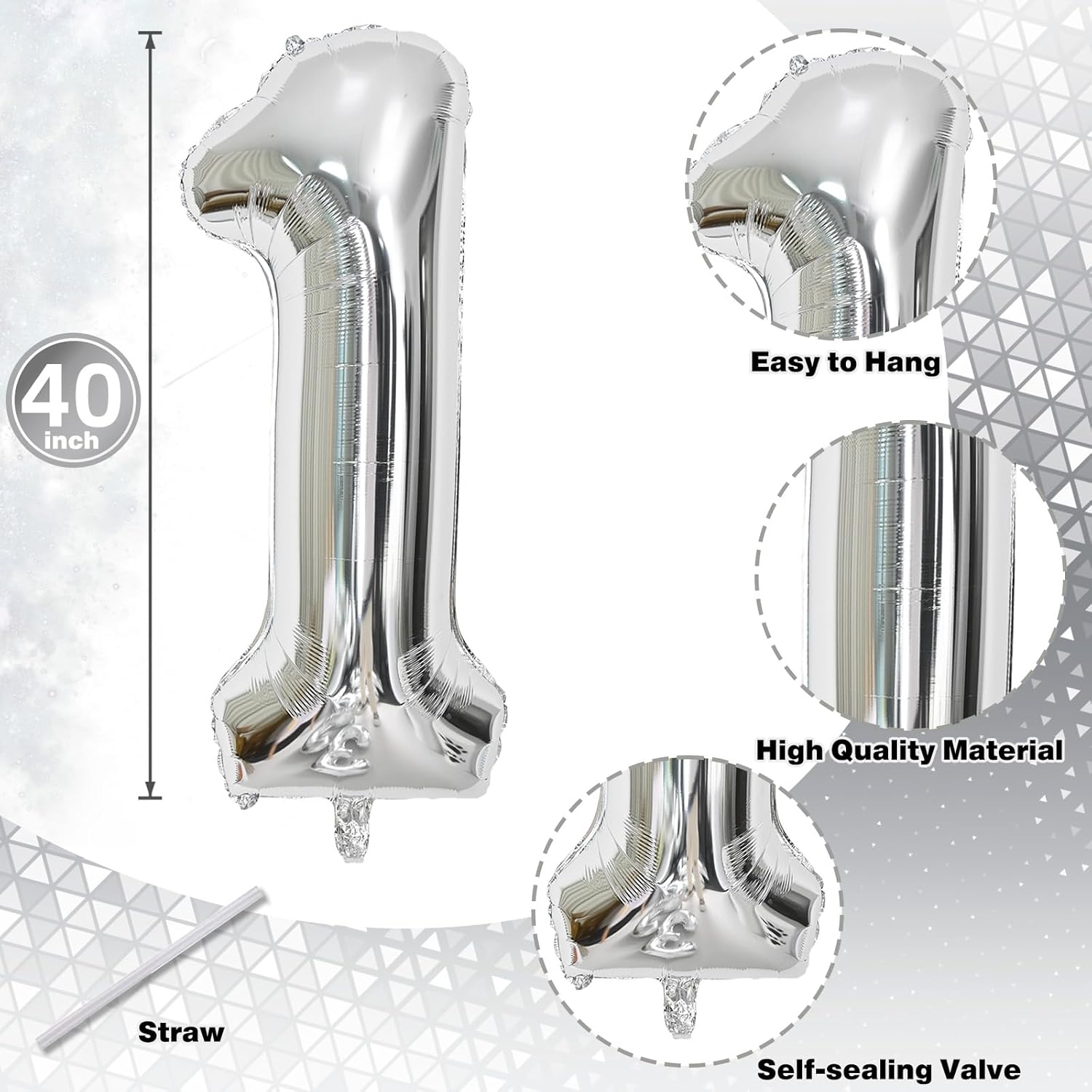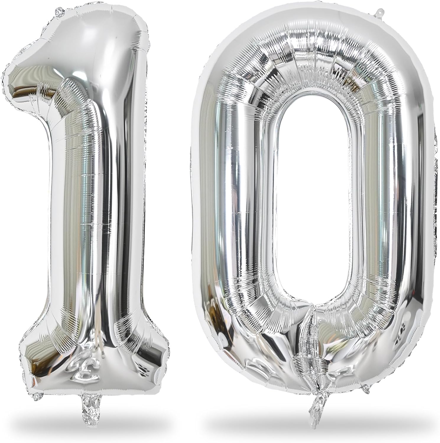 • 💓 Silver Number 10 Balloon: Our package included 40 inch number 1 & 0 balloon and 1pcs straw. Simply inflate the balloon using the straw, and you're ready to party! Silver number foil balloons are the best for girls or boys birthday party decoration.