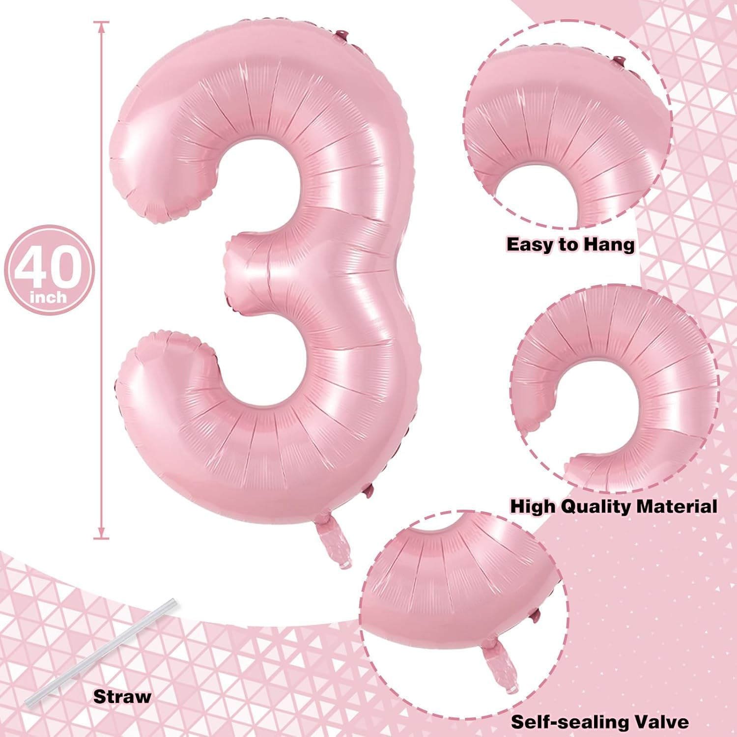 • 💓 Pastel Pink Number 13 Balloon: Our package included 40 inch number 1 & 3 balloon and 1pcs straw. Simply inflate the balloon using the straw, and you're ready to party! Light pink number foil balloons are the best for girls birthday party decoration.