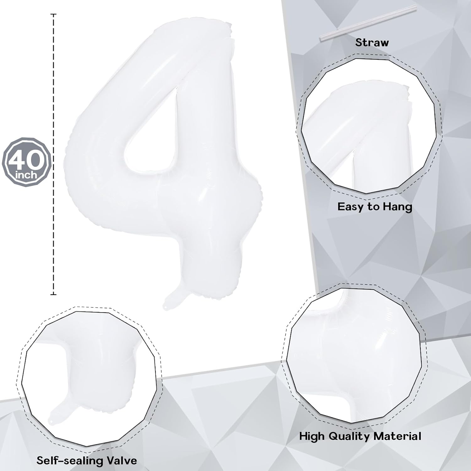 • 💓 White Number 40 Balloon: Our package included 40 inch number 4 & 0 balloon and 1pcs straw. Simply inflate the balloon using the straw, and you're ready to party! White number foil balloons are the best for women men birthday party decoration.