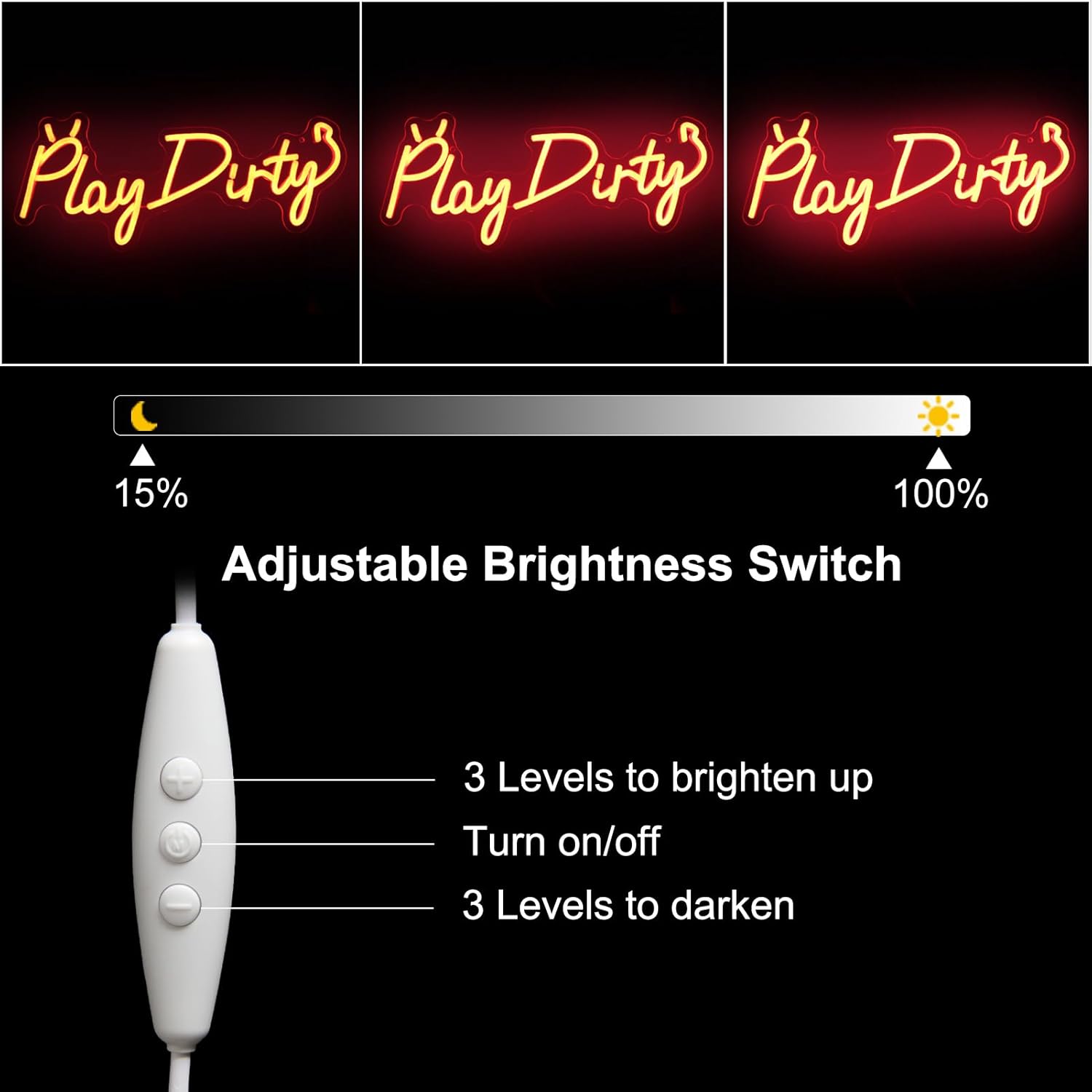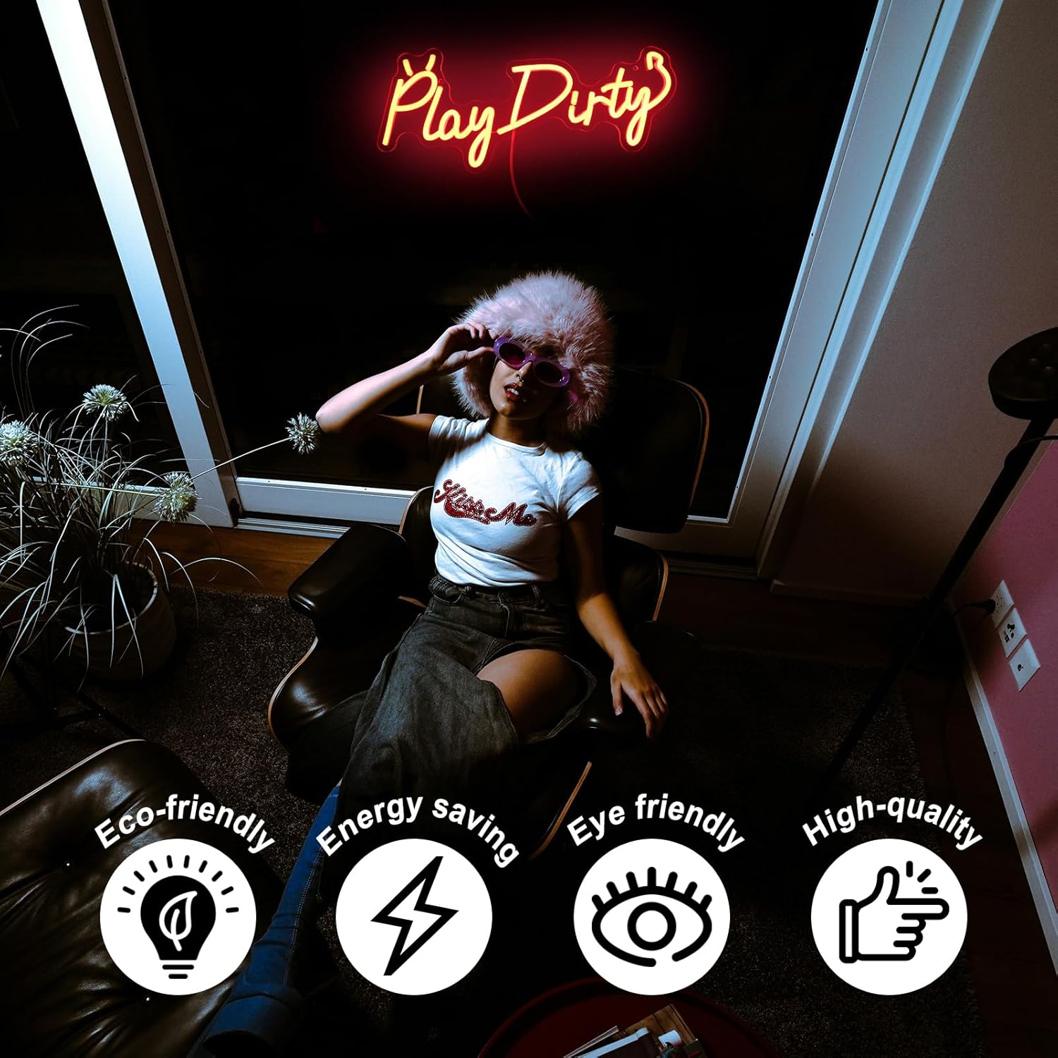• 【Room Decor & Gift】Play Dirty neon light is definitely a good choice to decorate bedroom, living room, bar, pub, hotel, man cave or party. It is also a great gift at birthday, Christmas, New Year's and anniversary for girls/friends/family/colleagues.