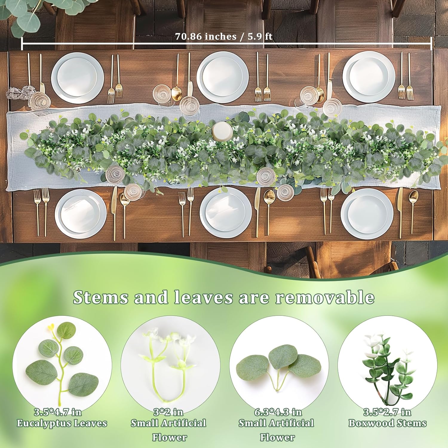 • ๐™‹๐™ง๐™š๐™ข๐™ž๐™ช๐™ข ๐™ˆ๐™–๐™ฉ๐™š๐™ง๐™ž๐™–๐™ก & ๐™๐™š๐™–๐™ก๐™ž๐™จ๐™ฉ๐™ž๐™˜: Expertly crafted with high-quality silk leaves and durable plastic stems, our eucalyptus decor not only look lush and lifelike, but are also designed to last. Every leaf is intricately detailed with rich textures for an impeccable, realistic appearance. Our Eucalyptus vines not just enhance your decor, but also transform any space with a burst of fresh, green vitality.