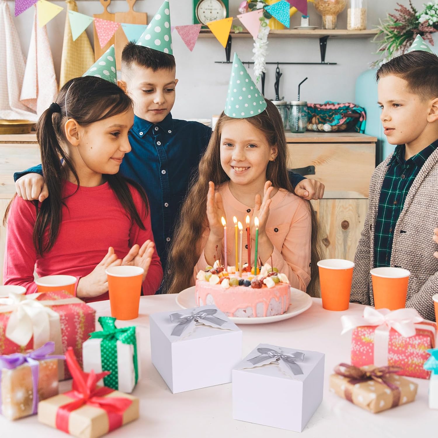 • Complete Set: This set includes 10PCS folding gift boxes made from high-quality paper, each measuring 4.7" x 4.7" x 3.5". The package also comes with 10 ribbons, making it easy to assemble and ready for gifting