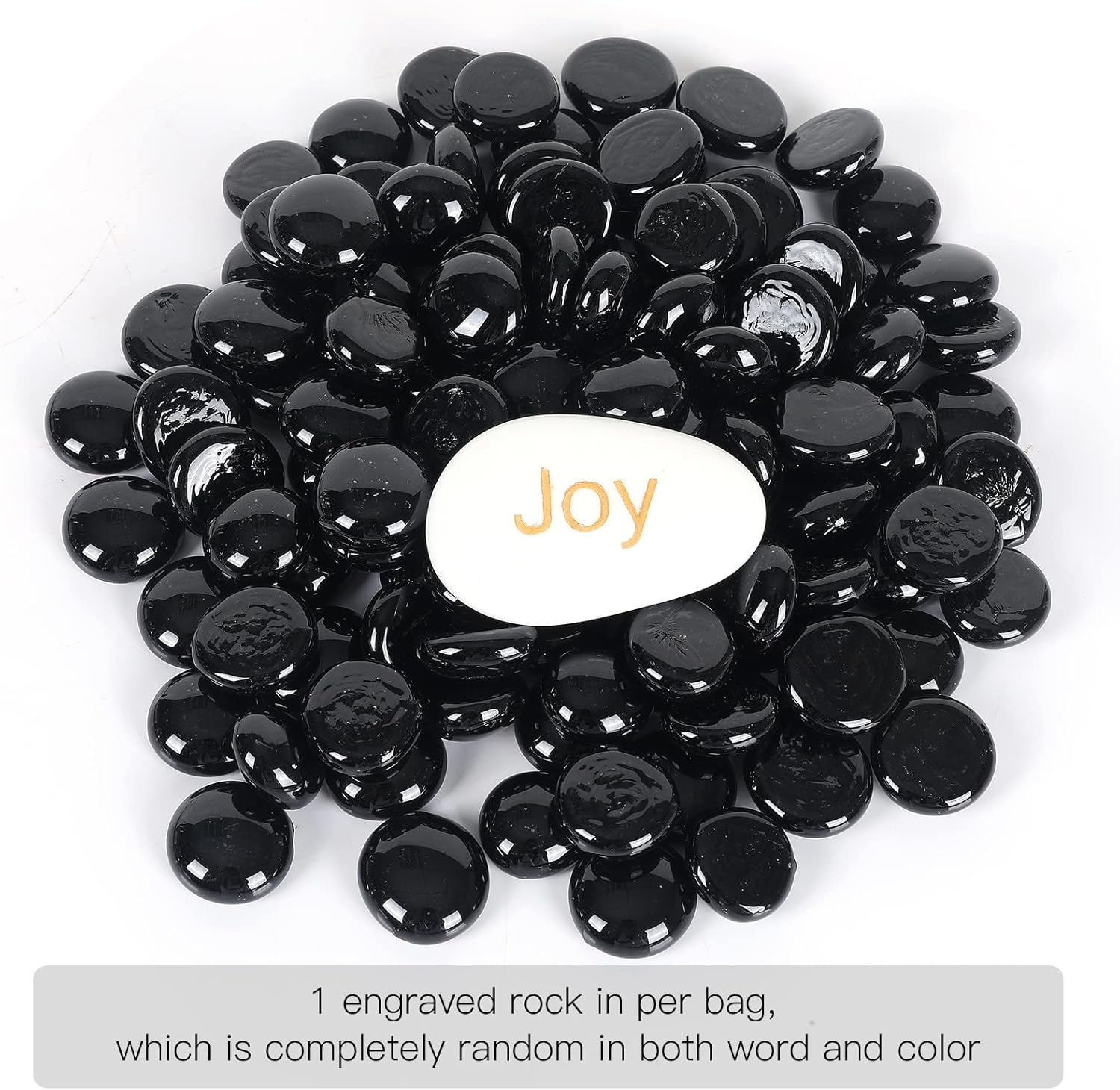 • 【Size & Color】The length of Ausluru pretty glass beads ranges from 0.6”-0.7”, Black Color. Come with 11lb and one engraved rock with different words of inspiration in per bag.