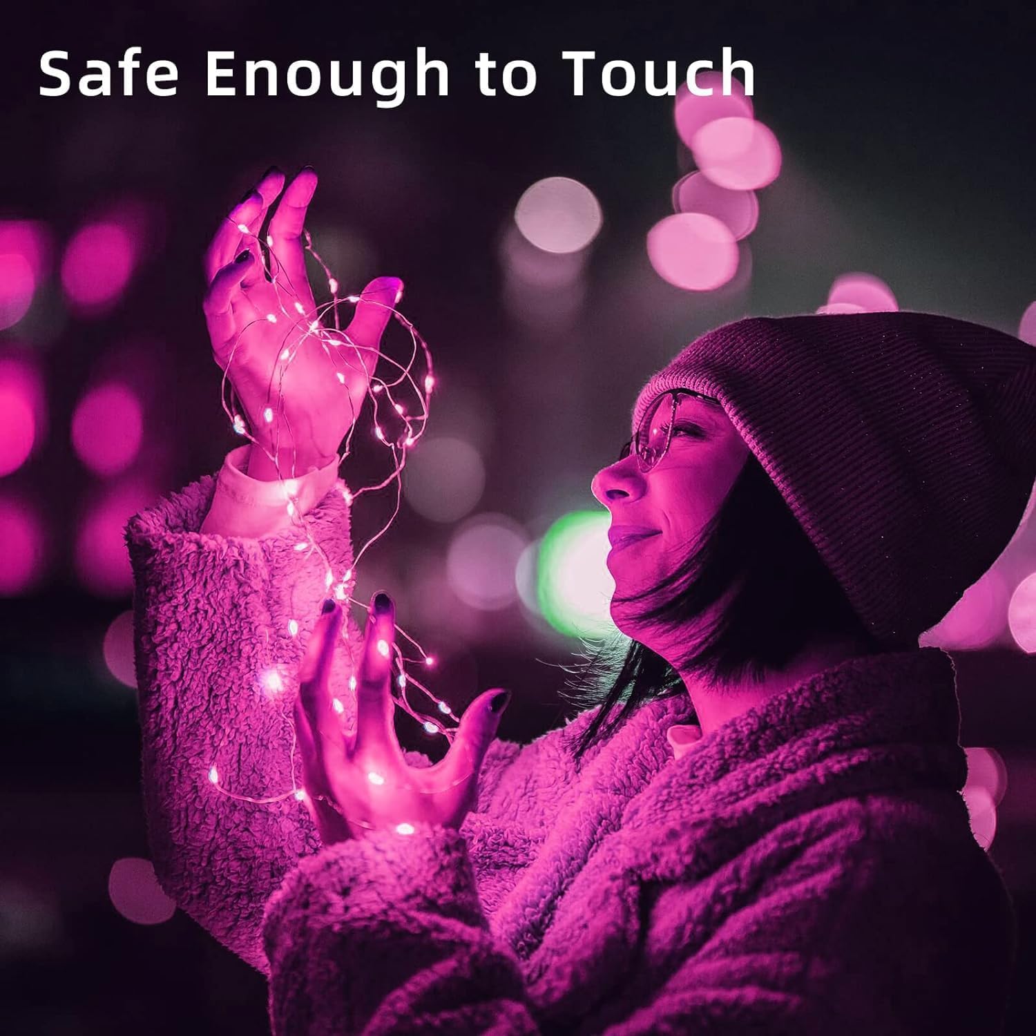 • DIY FAIRY WIRE LIGHTS: mini fairy lights by battery operated, bright and Pink fairy lights. Each fairy light has 20 small lights, can give you happy feelings like in a fairy tale world. Led fairy lights are made of 6.6 feet of high quality silver coated copper wire, which makes battery light string more stronger and durable.