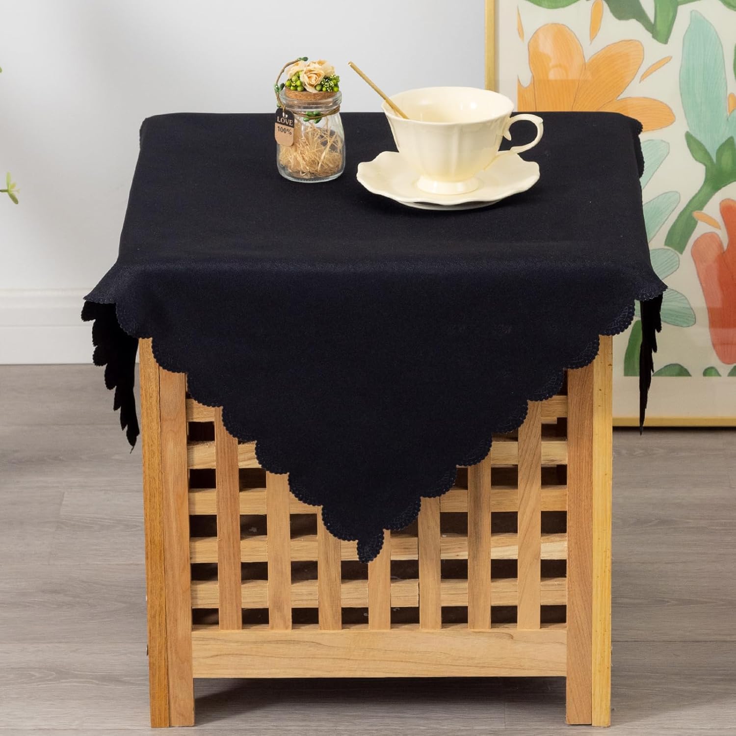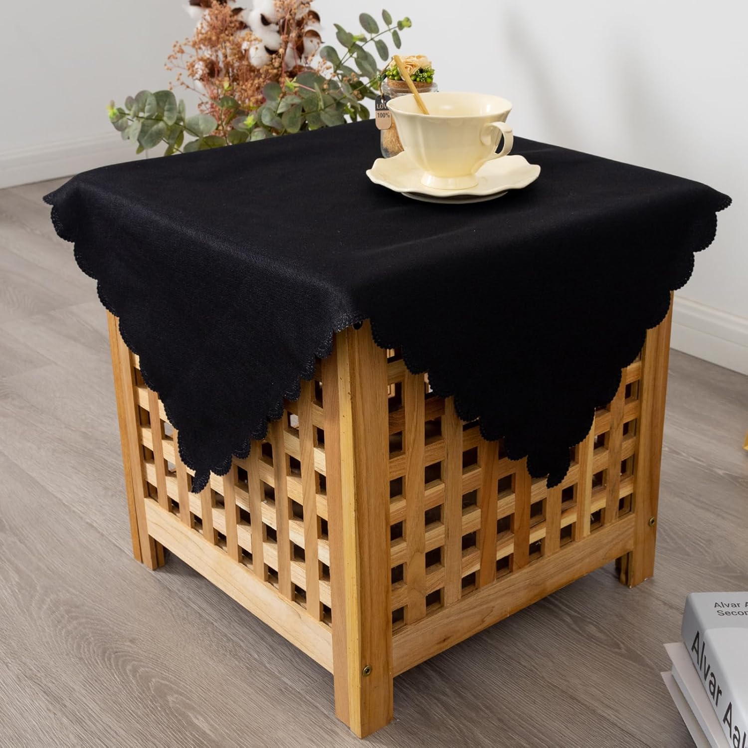 Small Square Black Tablecloth 24 x 24 Inch Polyester Fabric Washable Table Cover Decorative Wrinkle Resistant Solid Color Table Cloth for Nightstand Party Wedding Camping