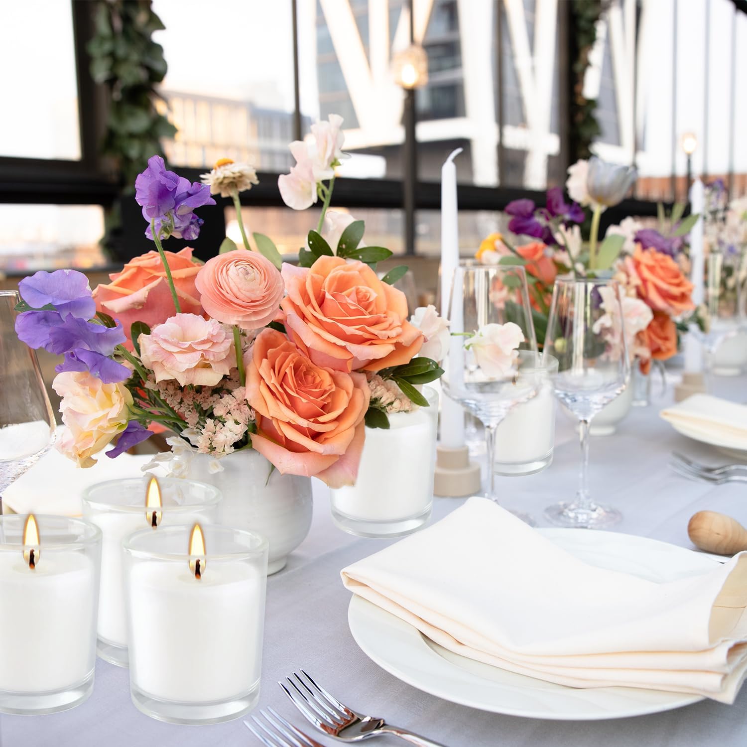 48 Pack White Unscented Clear Glass Filled Votive Candles. Hand Poured Wax Candle Ideal Gifts for Aromatherapy Spa Weddings Birthdays Holidays Party (White)