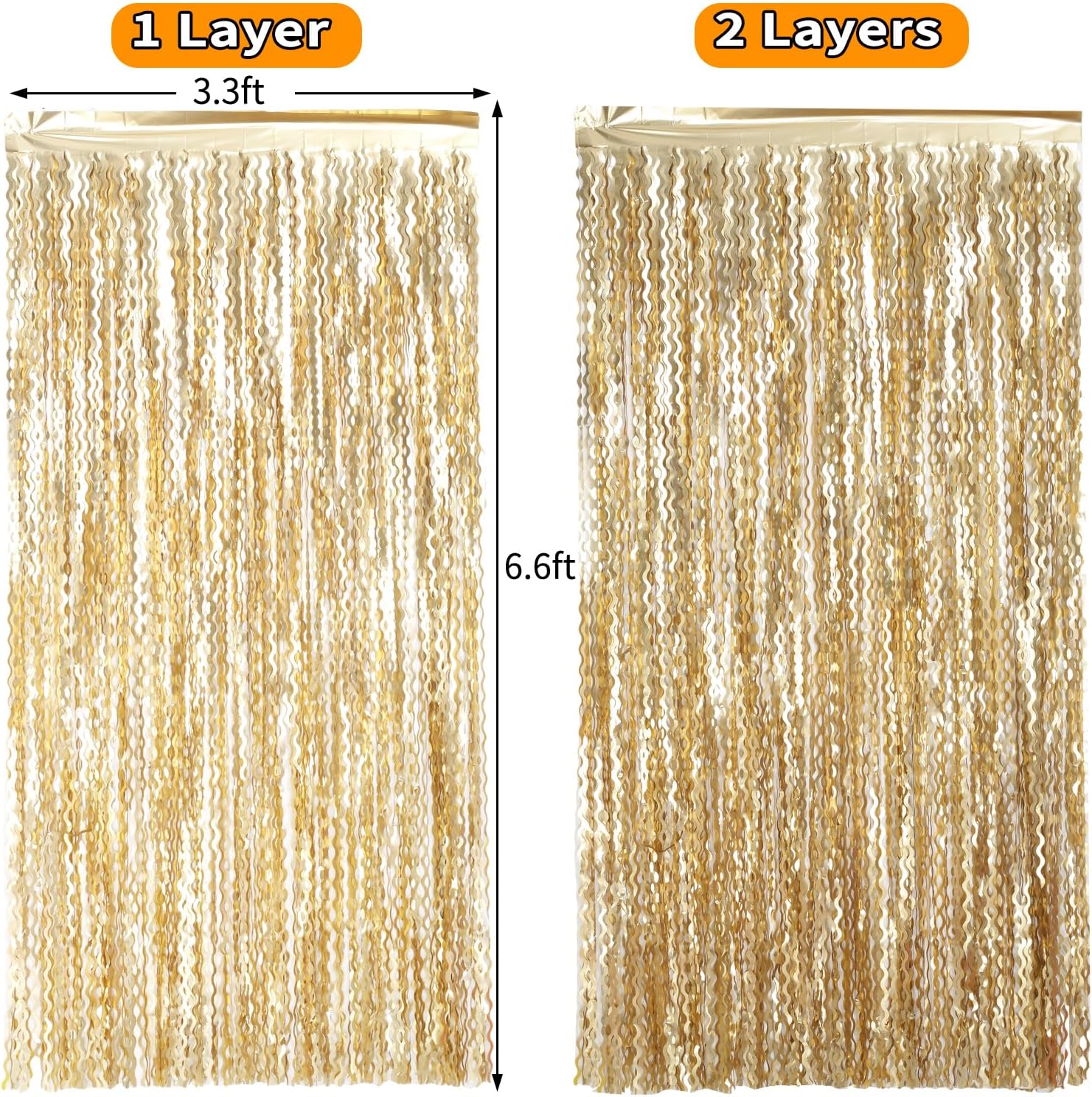 • Wavy Shape and Quality Material: The metallic tinsel backdrop is made of aluminum foil with wavy shape,You can overlap or side by side the fringe backdrop make it more fuller and better look