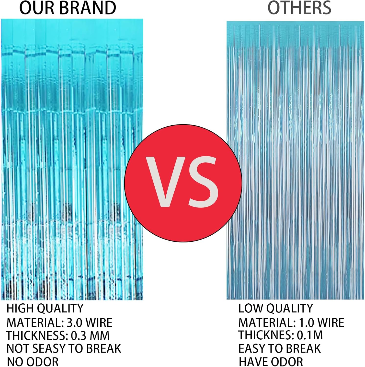 • 3 Pack foil fringe tinsel backdrops: each measuring a whopping 3.3 ft x 8.3 ft.Long enough for indoor or outdoor parties. Also can be cut in suitable length for your birthdays Party decorations These backdrops are perfect for creating stunning party decorations, event backdrops, and photo booths that will leave your guests in awe.