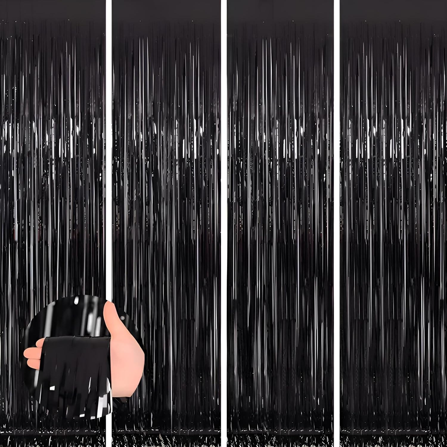 • 4 Pack foil fringe tinsel backdrops: each measuring a whopping 3.3 ft x 8.3 ft.Long enough for indoor or outdoor parties. Also can be cut in suitable length for your birthdays Party decorations These backdrops are perfect for creating stunning party decorations, event backdrops, and photo booths that will leave your guests in awe.