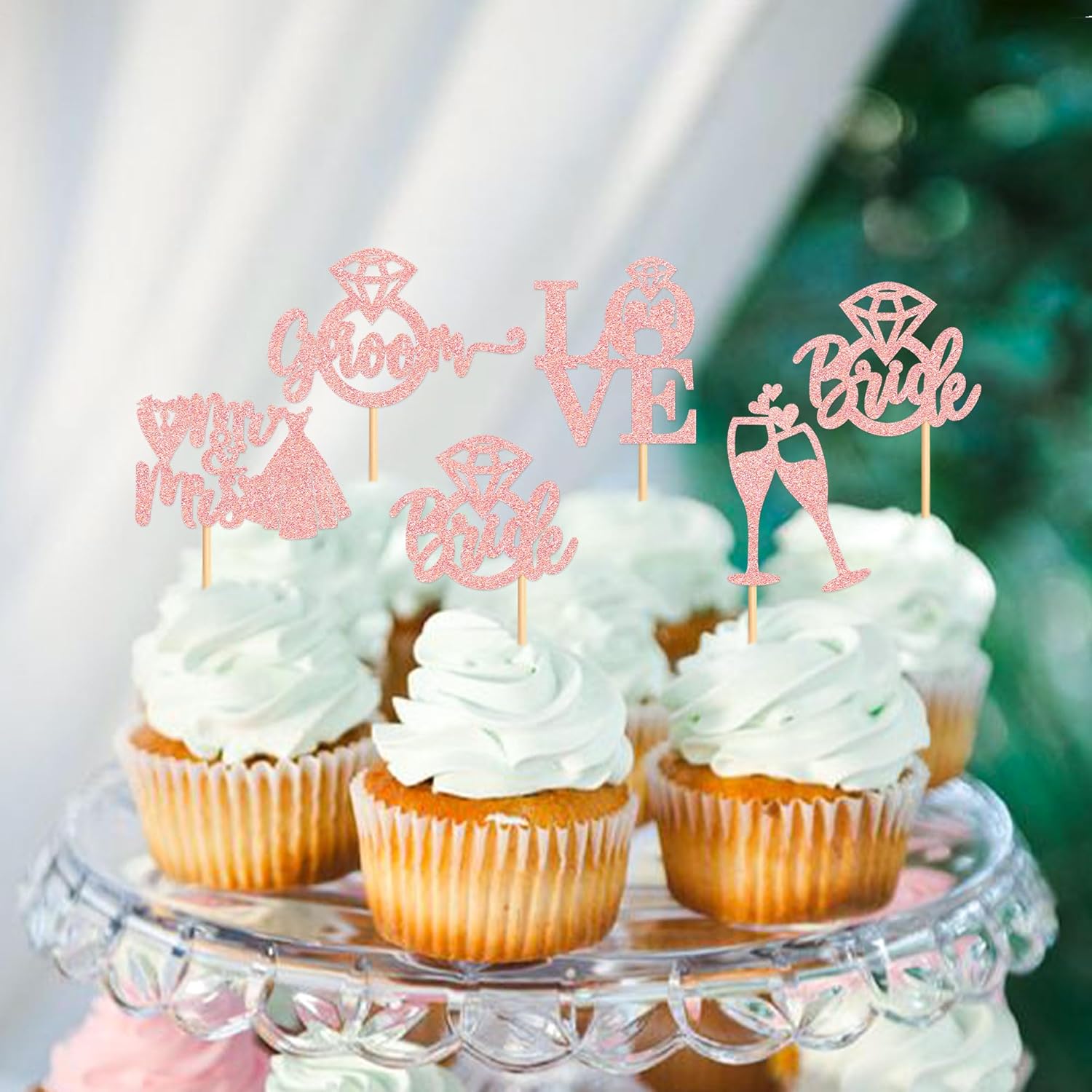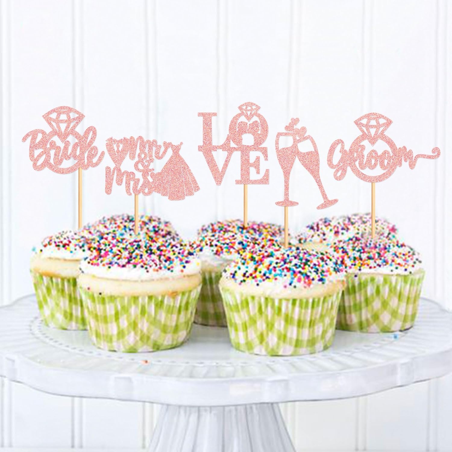 • 🍰【Unique design】:Sparkling adorable bride and groom cupcake toppers makes your cupcakes become the focus of bridal shower or wedding party. All cupcake toppers are pre-assembled, it can save much time for you.