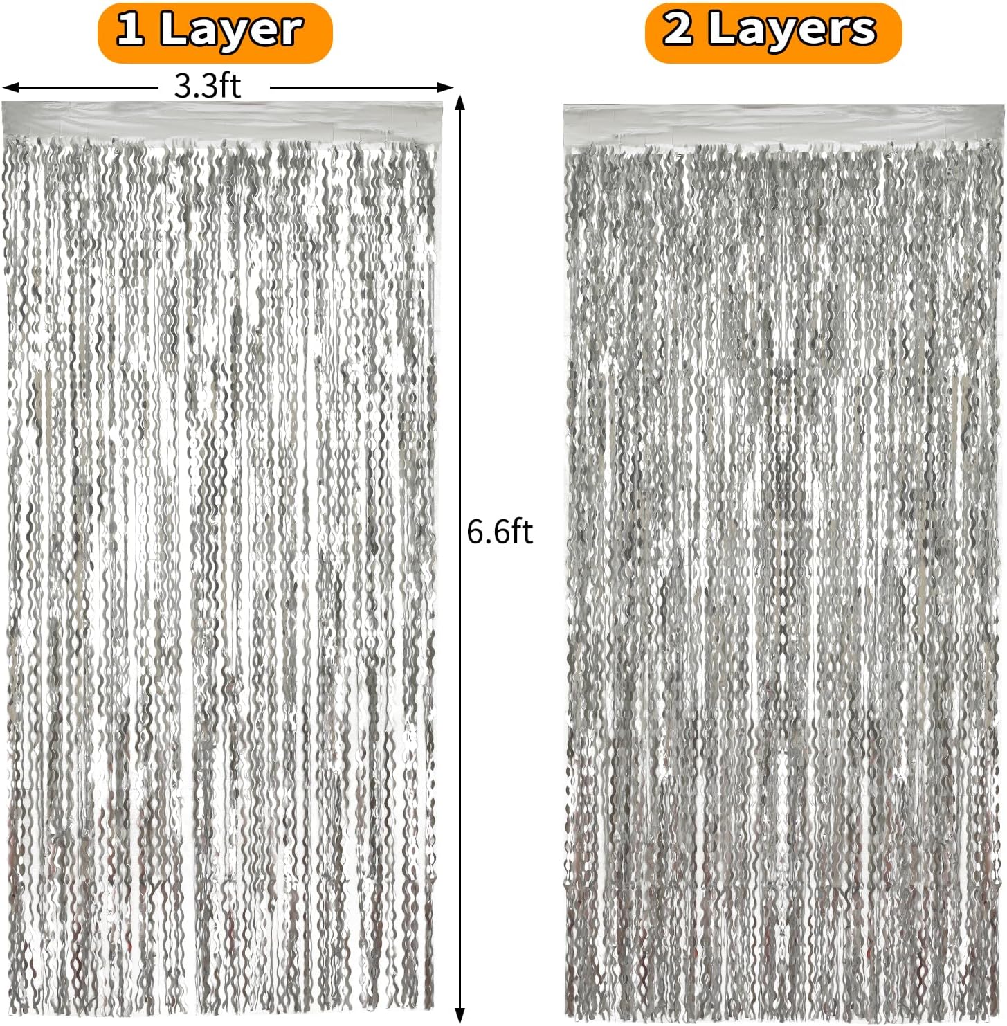 • Package Contents: 4 pack wavy foil fringe curtains,each curtain is 3.3ft x6.6ft,You can cut the metallic backdrop into the suitable length for use,Wonderful accessories for decorating doors and walls