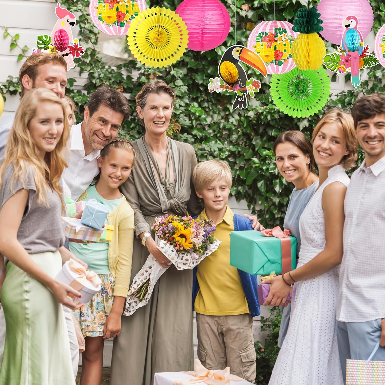 Luau Party Decorations, Aloha Paper Lanterns Tropical Parrot Birds Tissue Paper Fans Pineapple Honeycomb Decorations for Beach Pool Flamingo Moana Birthday Party Supplies