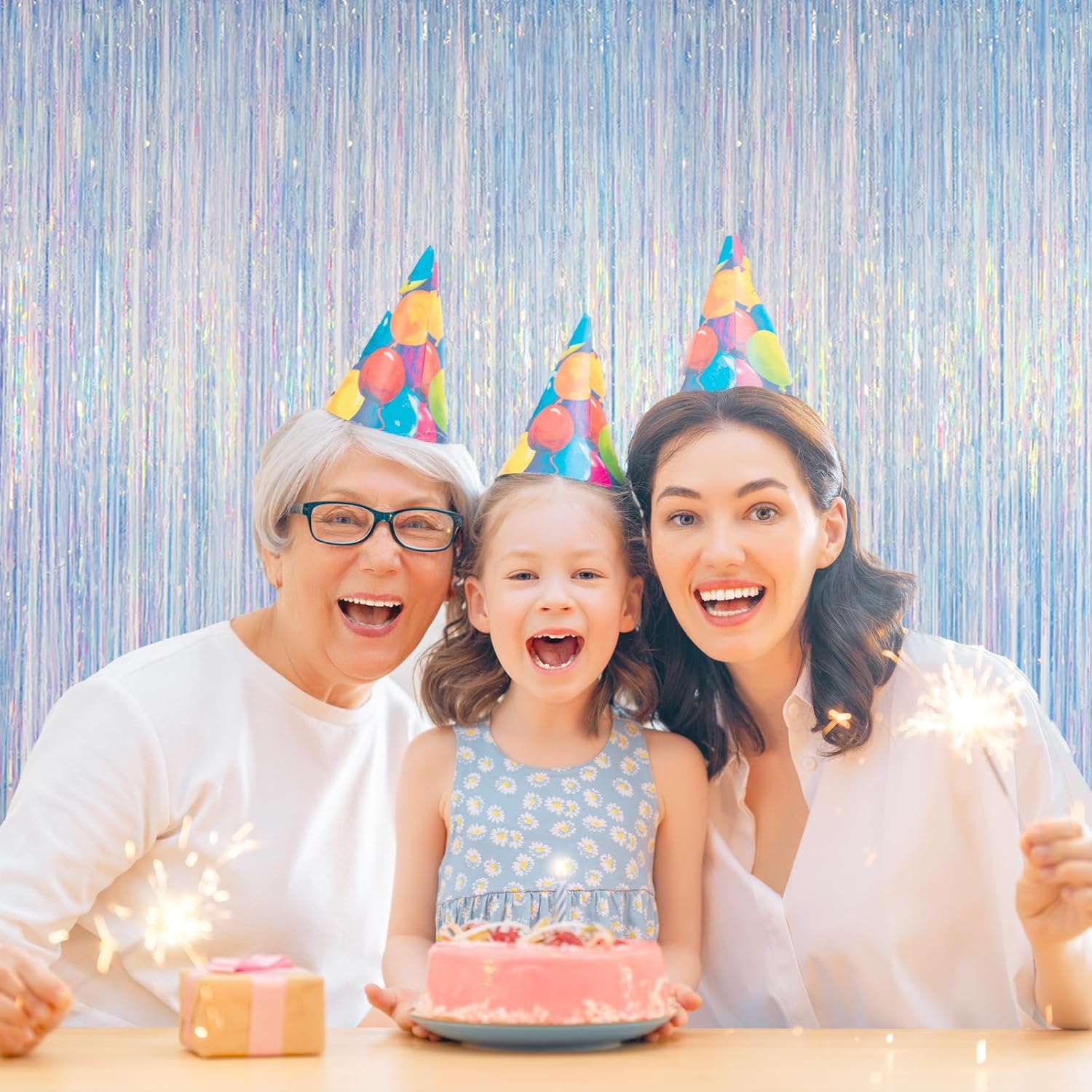 Melsan Iridescent Foil Fringe Backdrops Party Decorations - 2 Pack 3.2 x 6.5 ft Metallic Tinsel Photo Backdrop Curtains for Mermaid Unicorn Birthdays Parties - Iridescent 2 Packs