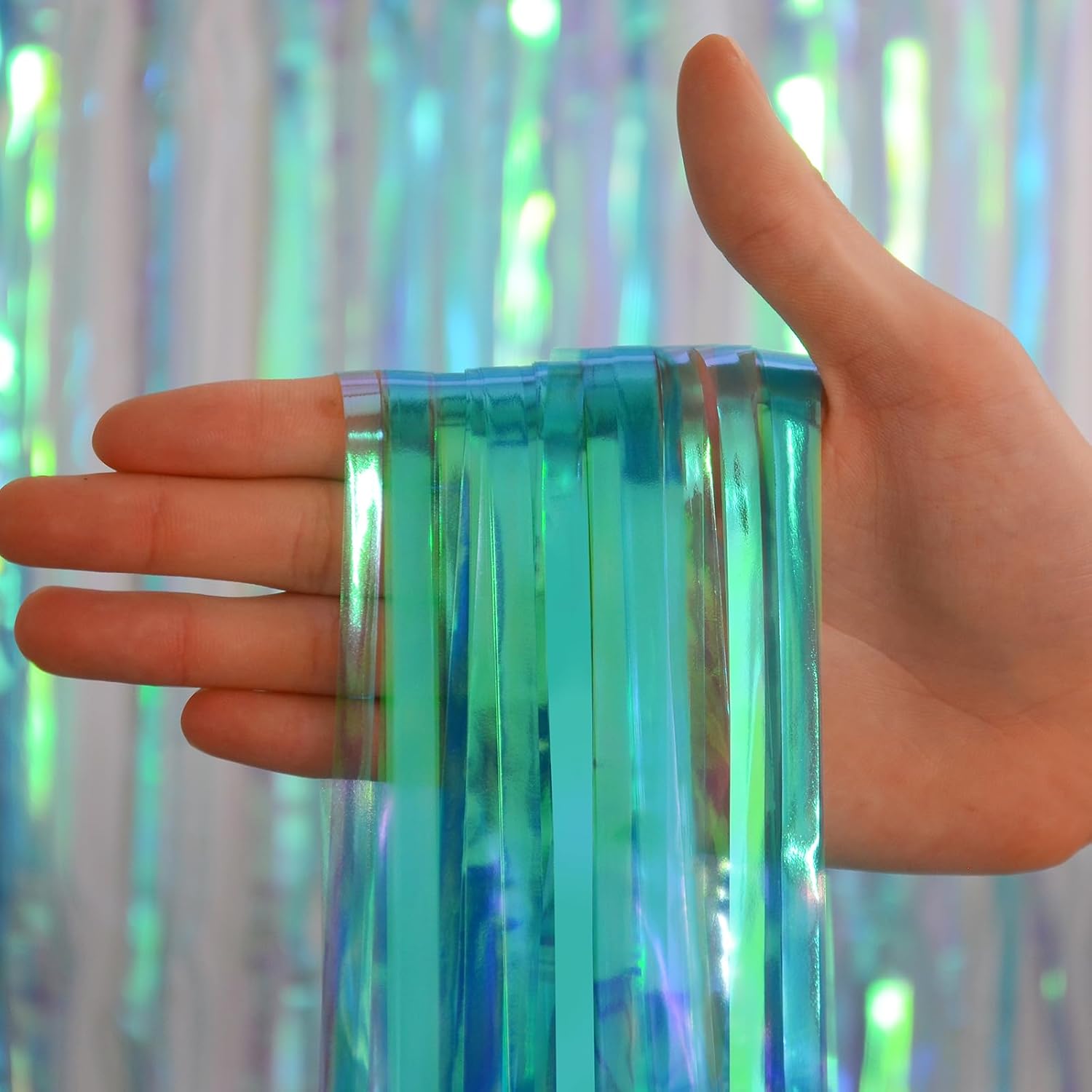 Melsan Fringe Backdrop Birthday Party Streamer Decorations - 2 Pack 3.2 x 6.5 ft Tinsel Backdrop Foil Curtains for Under The Sea Frozen Theme Birthdays Parties - Clear Blue 2 Packs