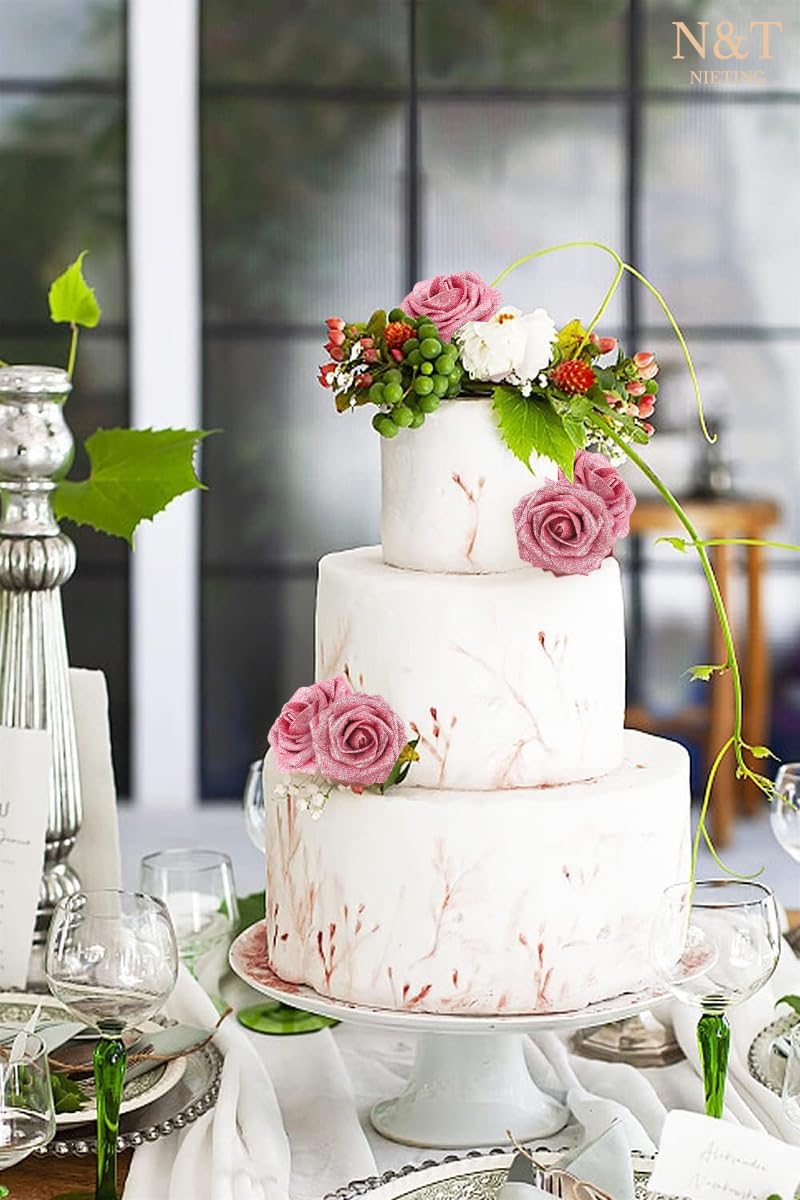 • Simple to DIY Floral Arrangements: Soft metal flower stems are easy to cut, bend, and twist, making roses easy to process. All foam flowers can be simply attached to flower bouquet, wedding cakes, garlands, arches, signs, or railings.