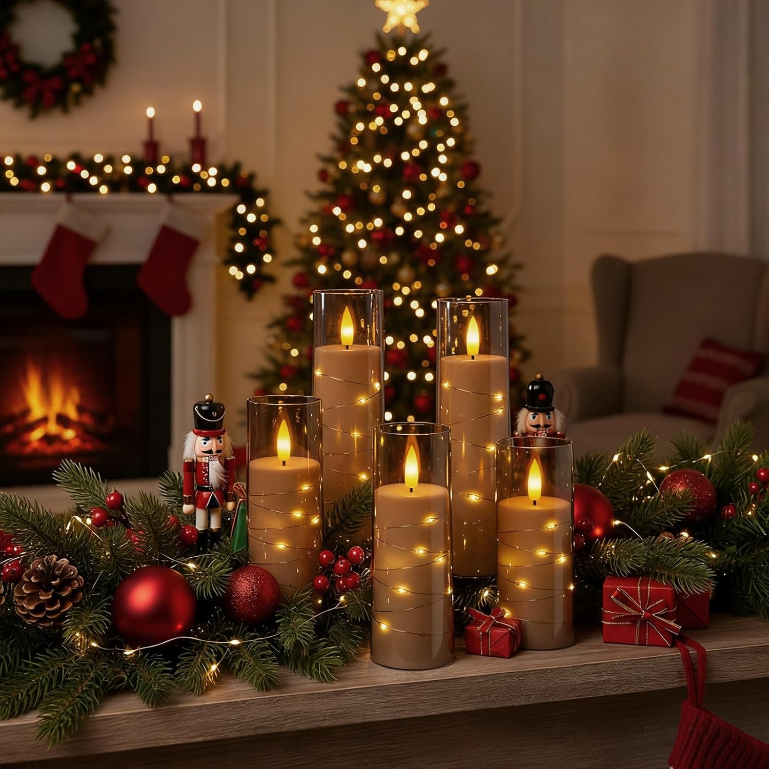 • 【Embedded String Lights】: The acrylic LED candle shell is inlaid with fairy lights inside, like multiple tiny "stars" to add light and charm. It is the great choice for decorating candles at home, weddings, Halloween, Thanksgiving, Christmas, etc.