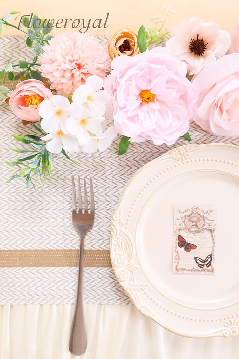 • ♔EASY TO DIY & CARE-Floweroyal fake flower is a box of pre-selected flowers by color, size and type. If you don't know how to make flower arrangements, we have picked out all the right kind of flowers for you to create. Our flexible plastic flower stems have built-in iron wires. It's very easy to stick in flower mud to arrangements or bend for DIY. Do not have to water and no dead leaves. Easy to clean and remove the dust. Not easy to fade. Easy to store for a long time and use repeatedly.